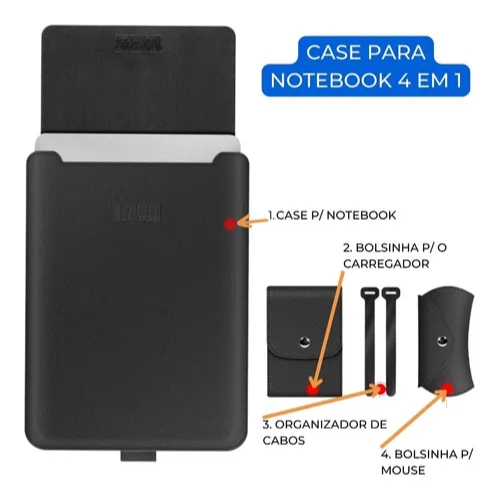 Case Capa Notebook Macbook Em Couro 4 Em 1, 13-16.1 Pol