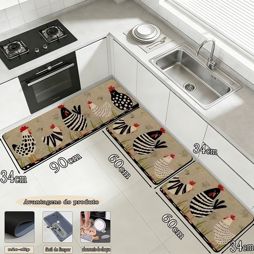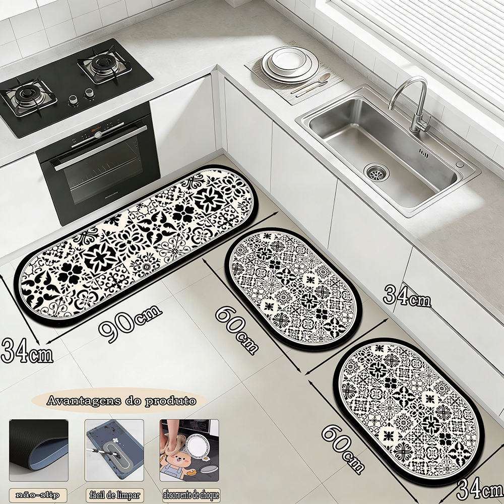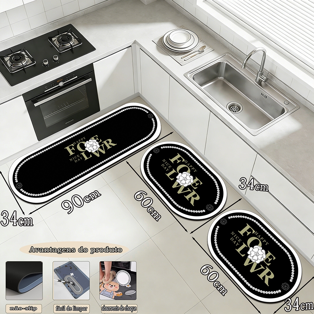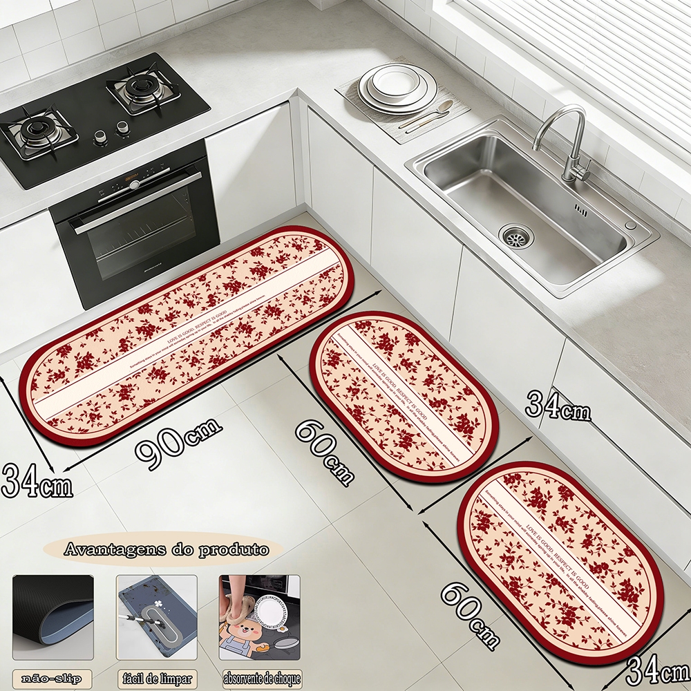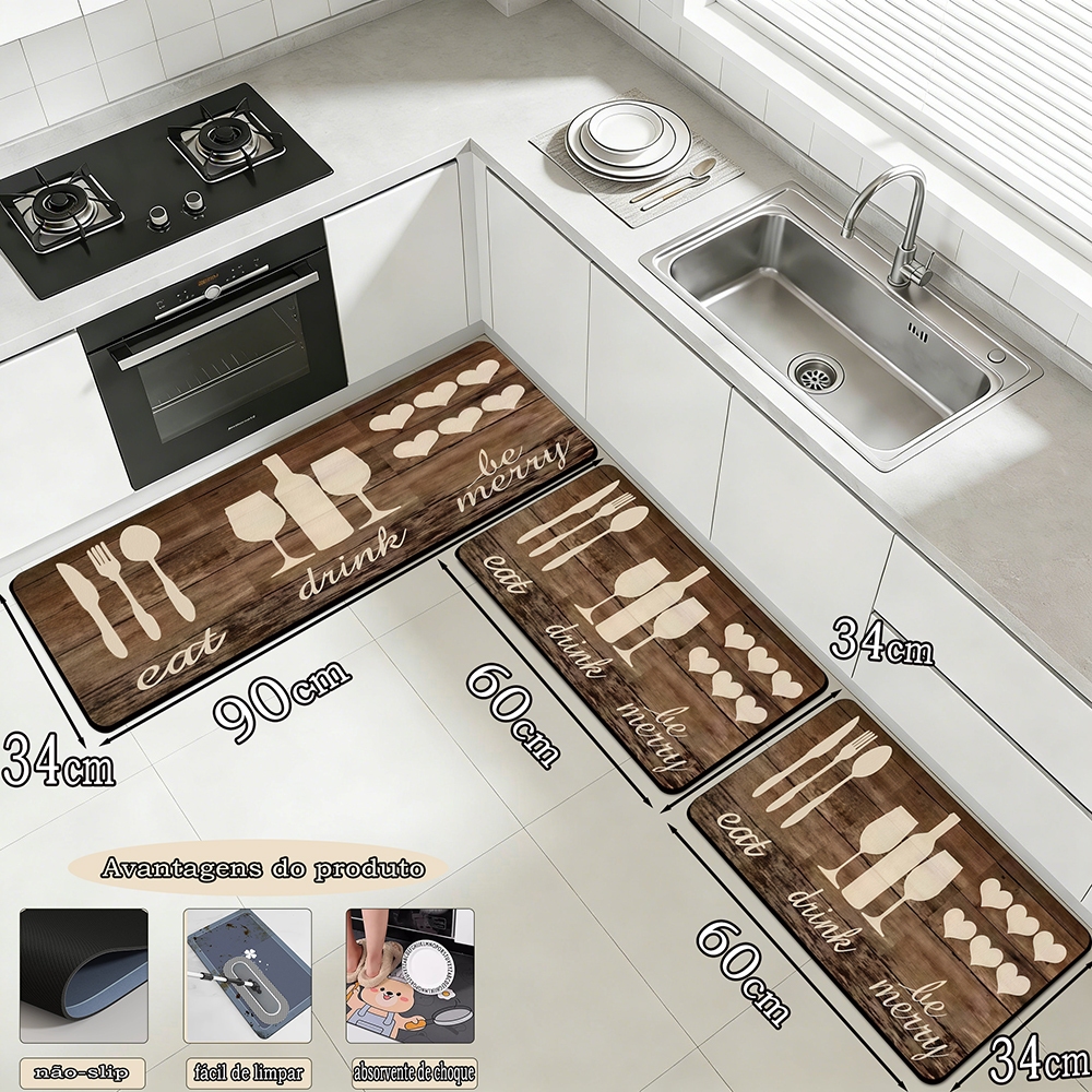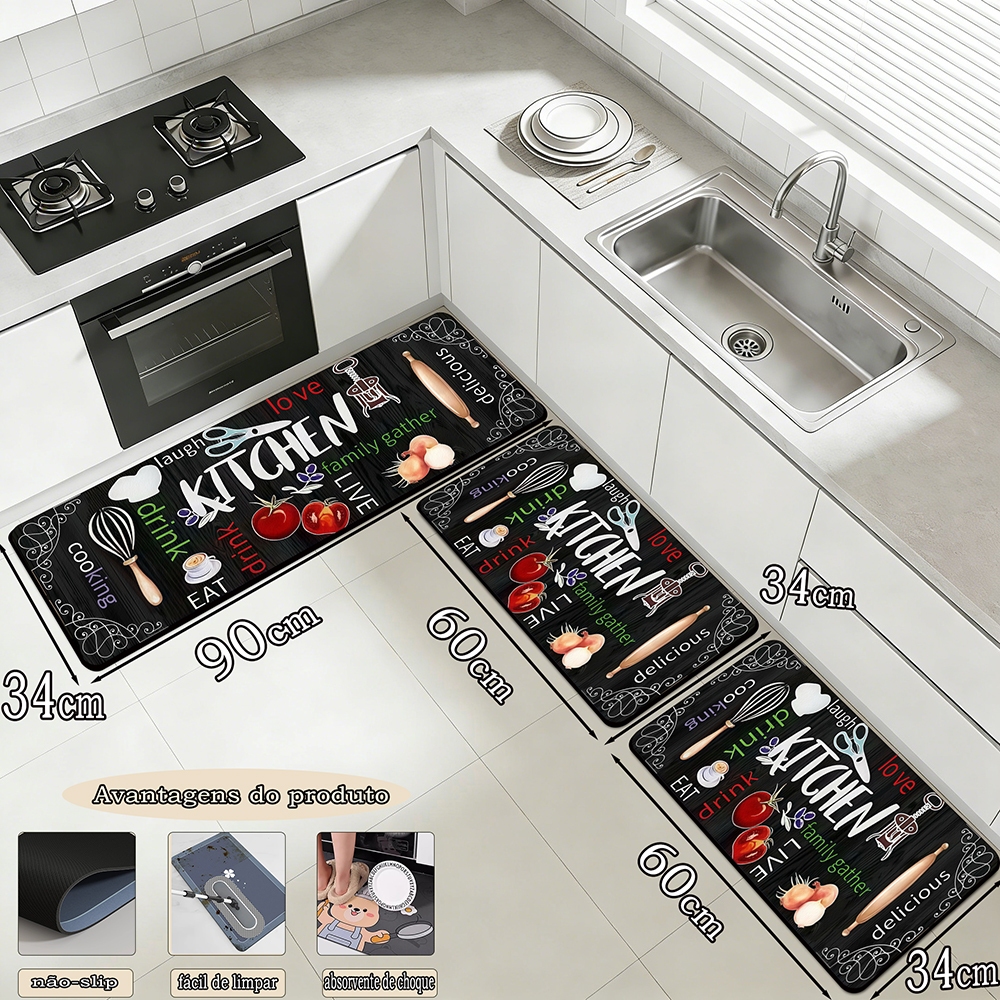 Mata de cozinha de tapete de piso de 3 peças combinação de mat á de piso de 90cm * 34cm