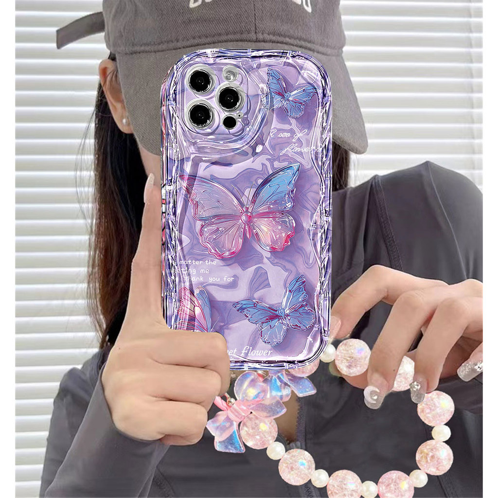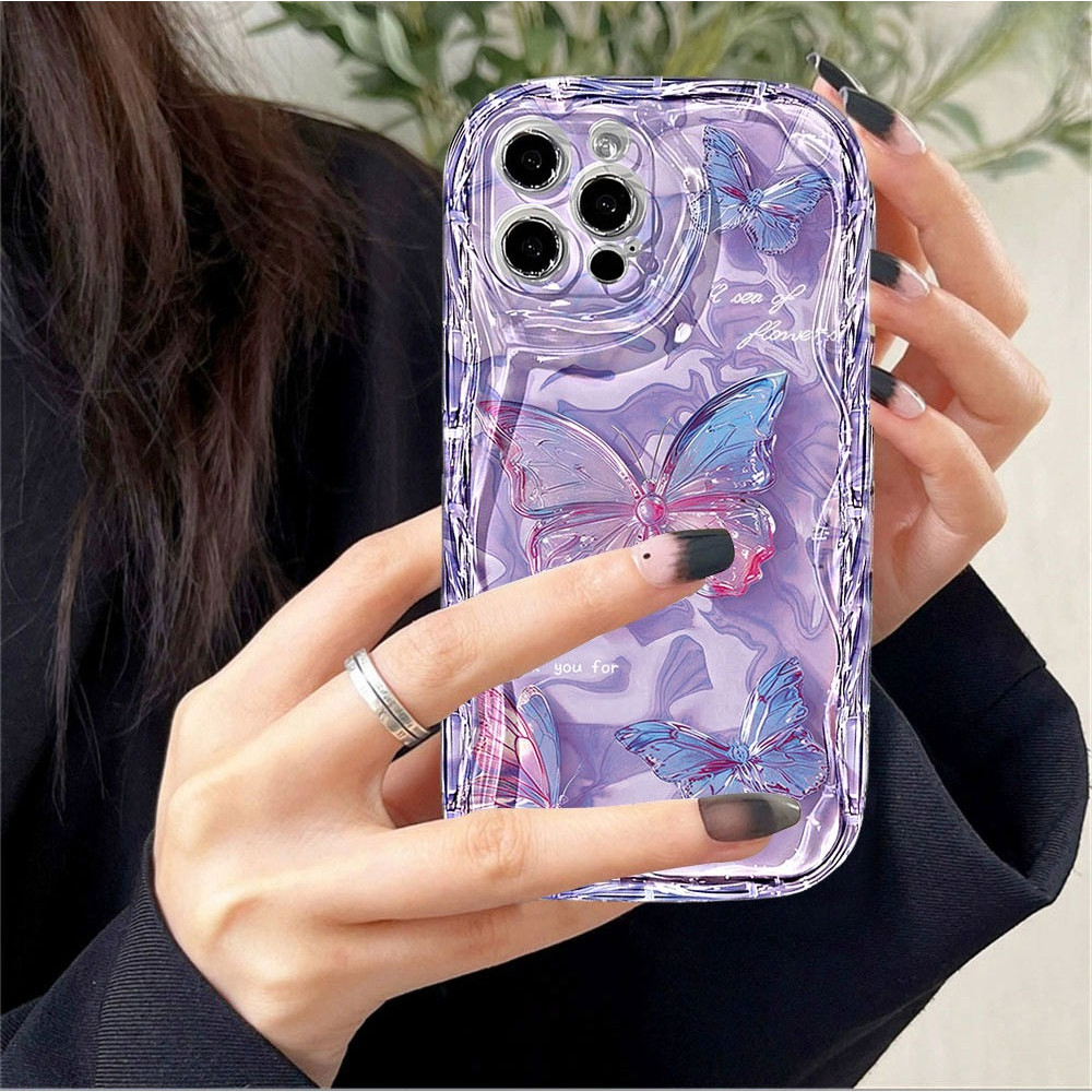 Capa Para iPhone 17 Pro Max 17Air 16 15 13 11 14 12 11 Xs XR Na Moda E Atraente Roxo Rosa Borboleta Caso De Telefone