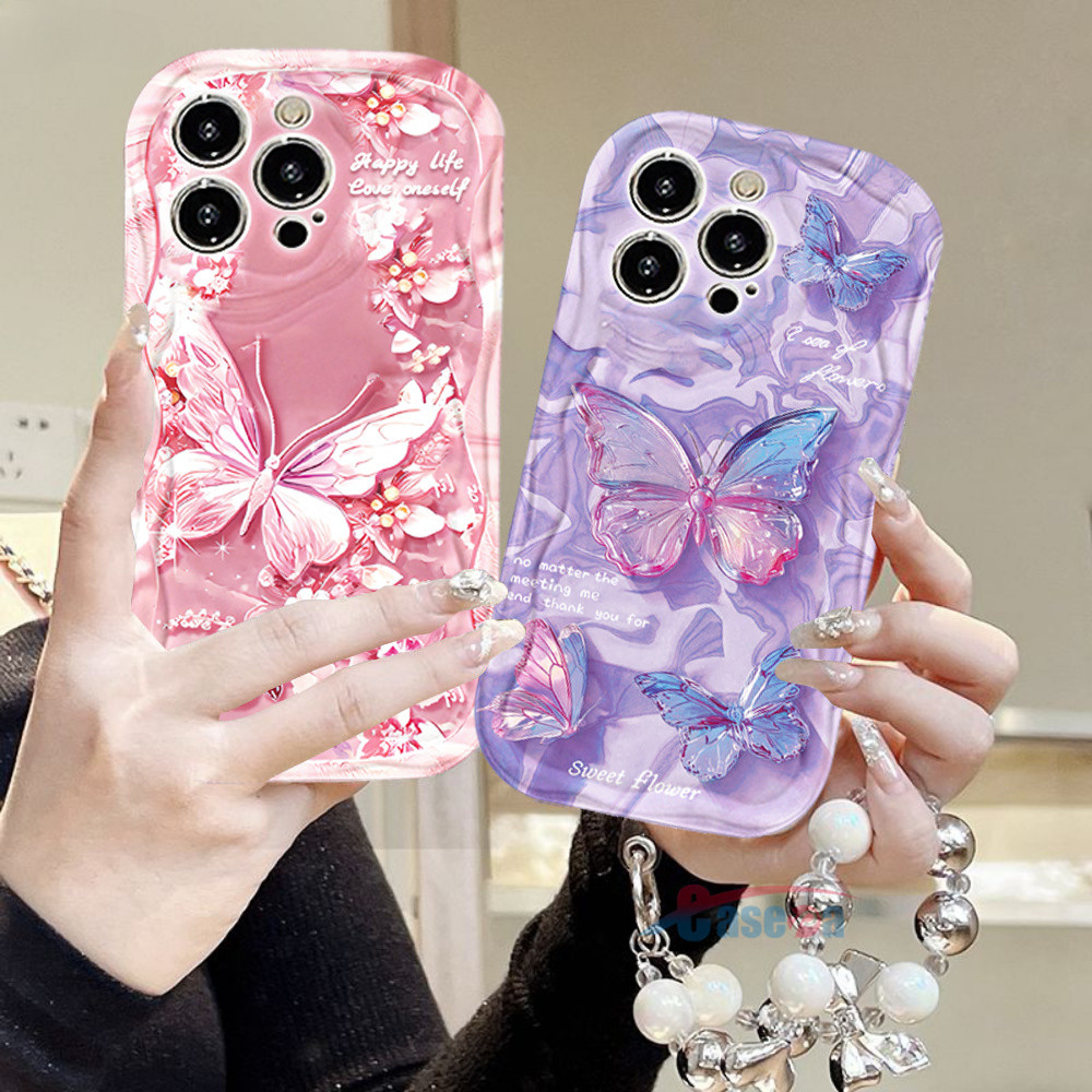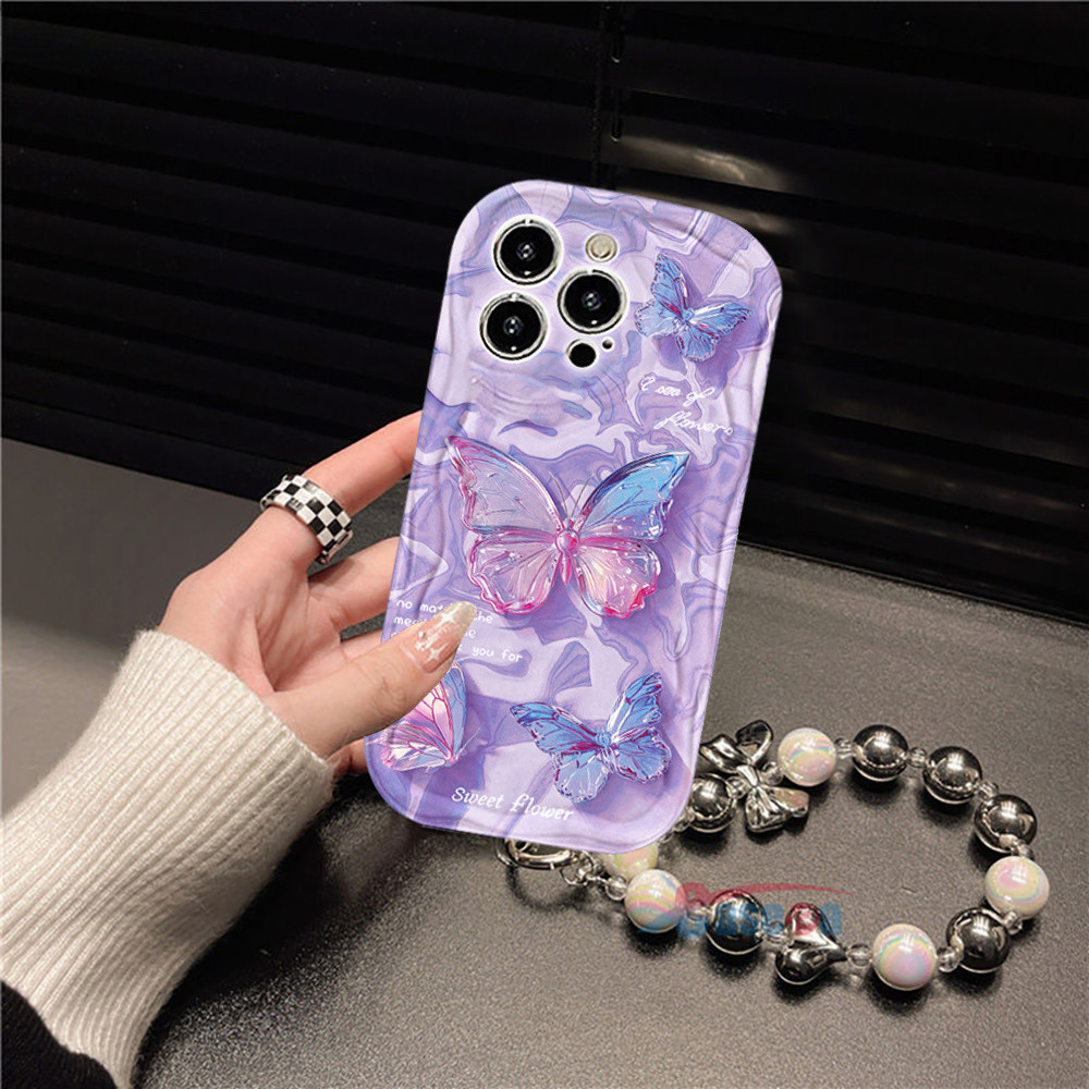 Capa Para Redmi Note 14 Pro 13 12 11 10 9 8 14C 13C 12C 10C 9A POCO X7 C75 C65 Mármore Roxo Borboleta Glitter Caso