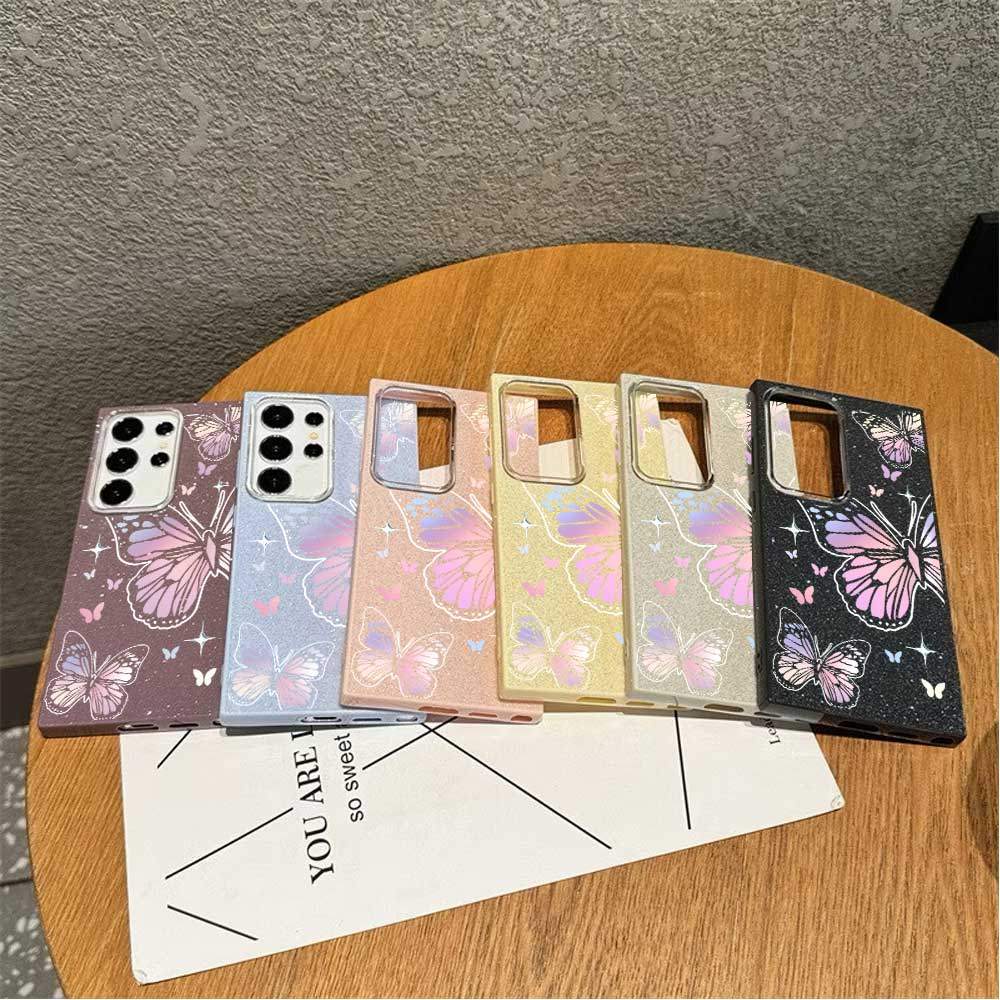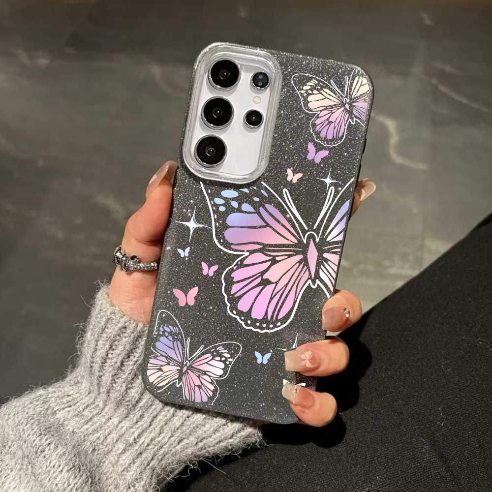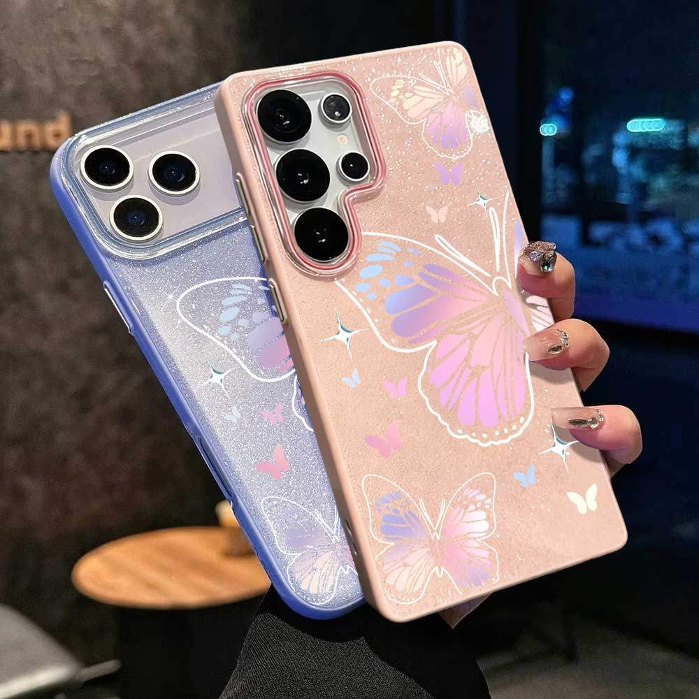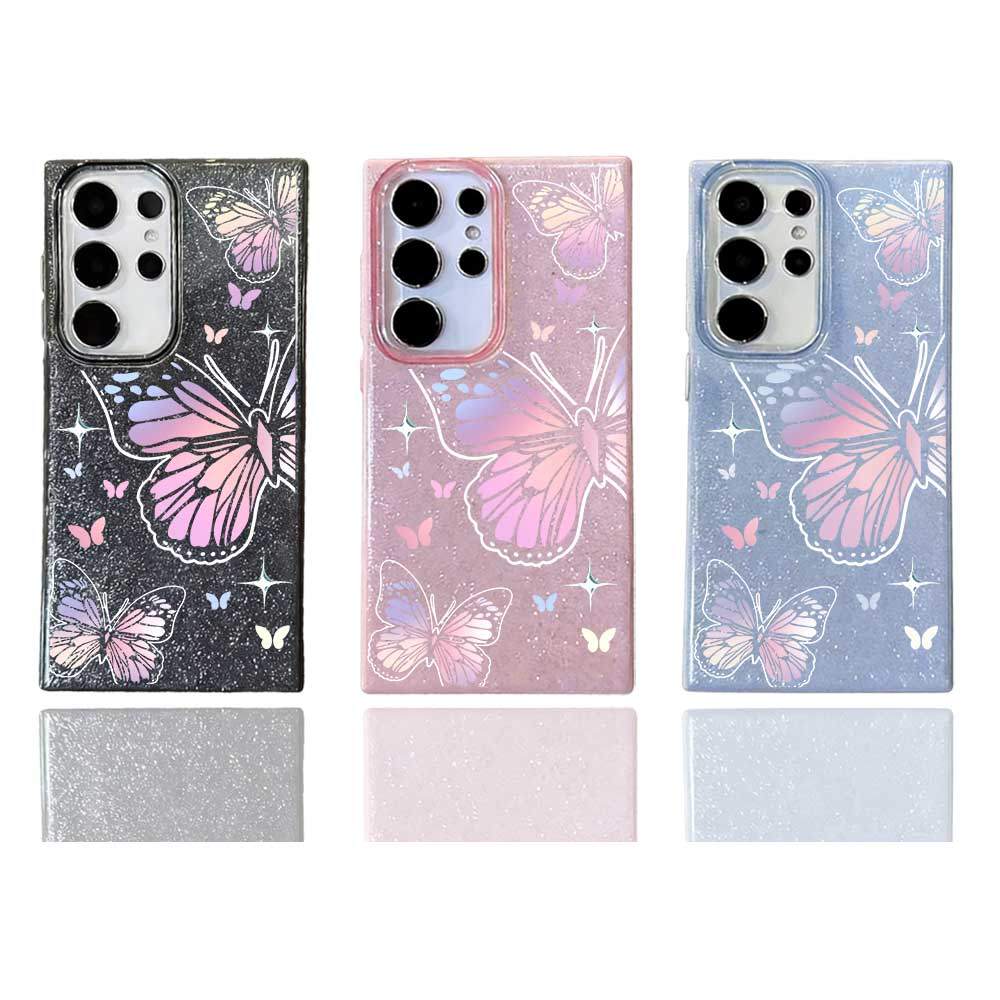 Caso Glitter Para Samsung S26 Ultra S25 S24 Plus S23 FE S22 S21 S20 A17 A07 A06 A15 A16 A56 A36 Gradiente Borboleta Luxo