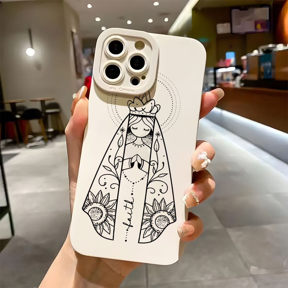 Capa Capinha Para iPhone 17 Air 16 15 14 Plus Pro Max Silicon Fosco Proteção De Lente Anti-Impacto Nossa Senhora