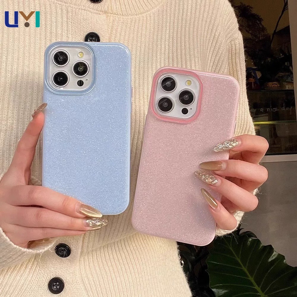 Capa Para iPhone 17 Pro Max 17Air 16 15 13 11 14 12 11 Xs XR Cor Sólida Luxo Glitter Caso Uyicase