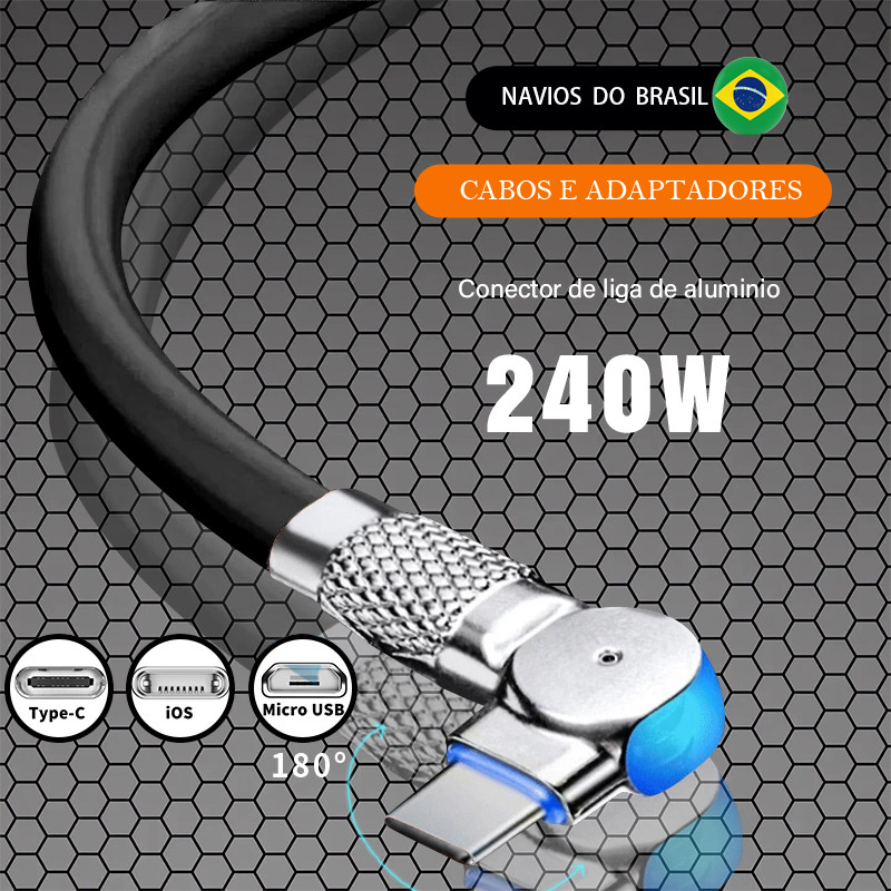 Cabo Micro USB Tipo C iOS De Carregamento Rápido Suporta 180 ° Indicador LED De Silicone De Rotação ZYCase