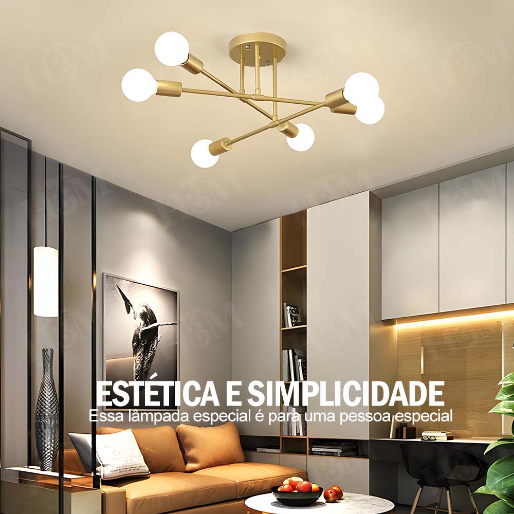 Lustre Moderno Semi-Incorporado Lâmpada De Teto Antigo Nórdico Decorativo Casa Iluminação Dourada ~ !