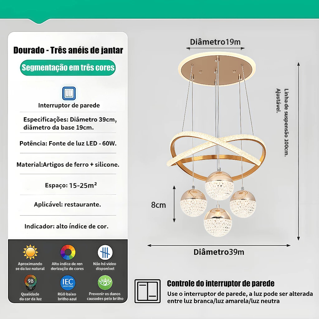 3 cores em 1 luz Lustre para sala Lustre Pendente Cozinha Luminária de Teto Led Nordic Moderno Decoração Para Sala