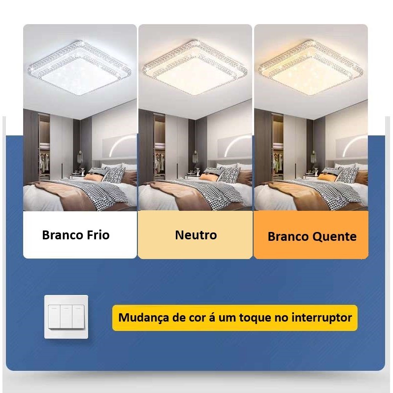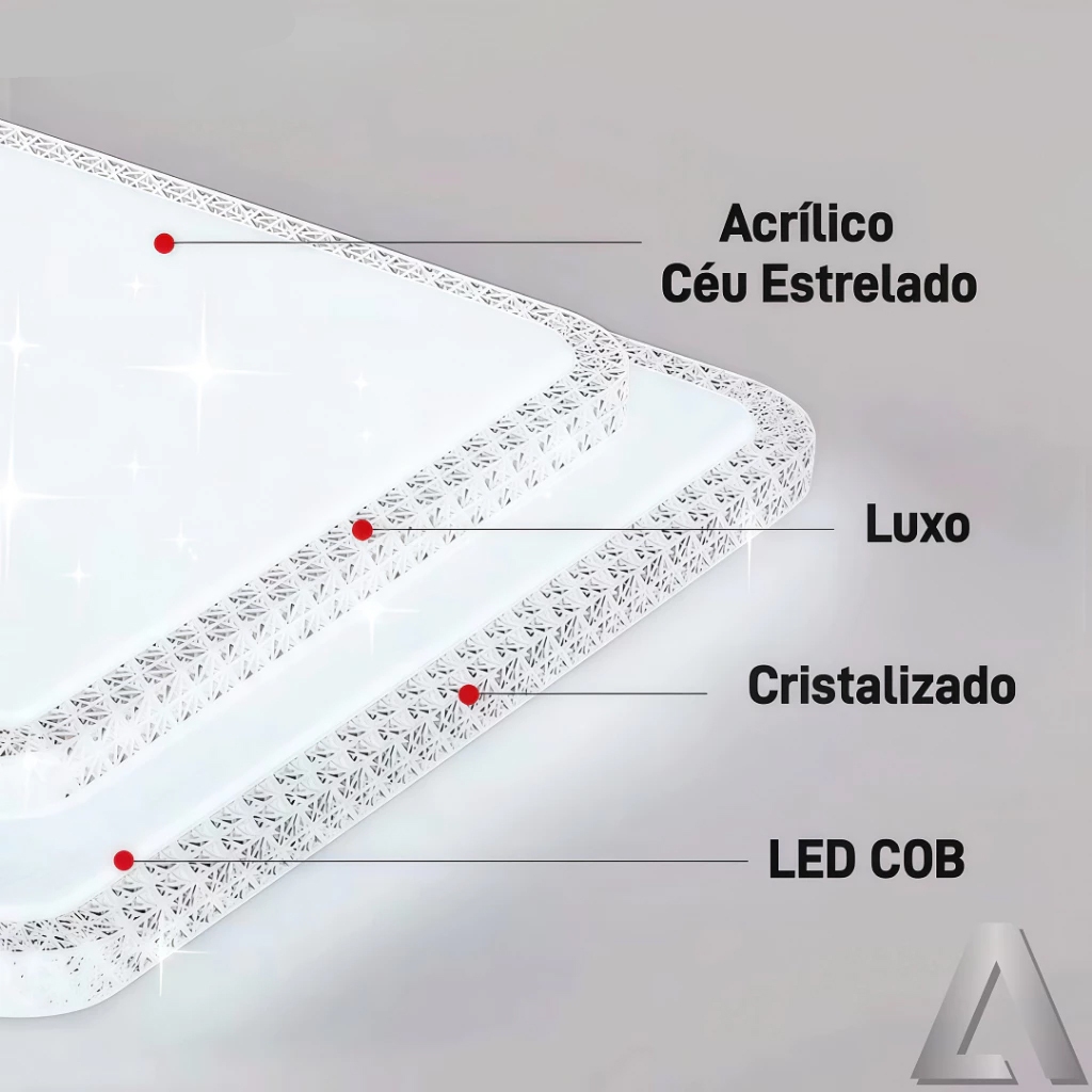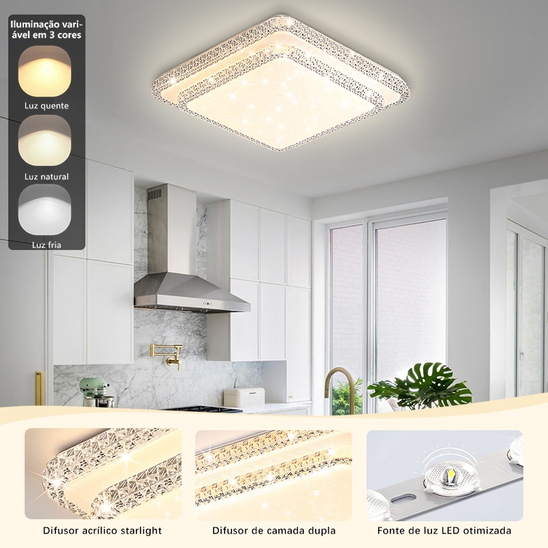 Luminária Teto Plafon Led Sobrepor Efeito Cristal Céu Estrelado Brilhante 3 Cores Borda Infinita
