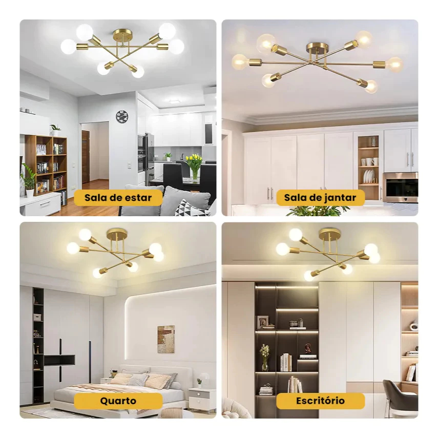 Lustre Moderno Lâmpada De Teto Semi-Embutida Iluminação De Ouro Antiga Nórdica Decorativa De Casa 110V-220V