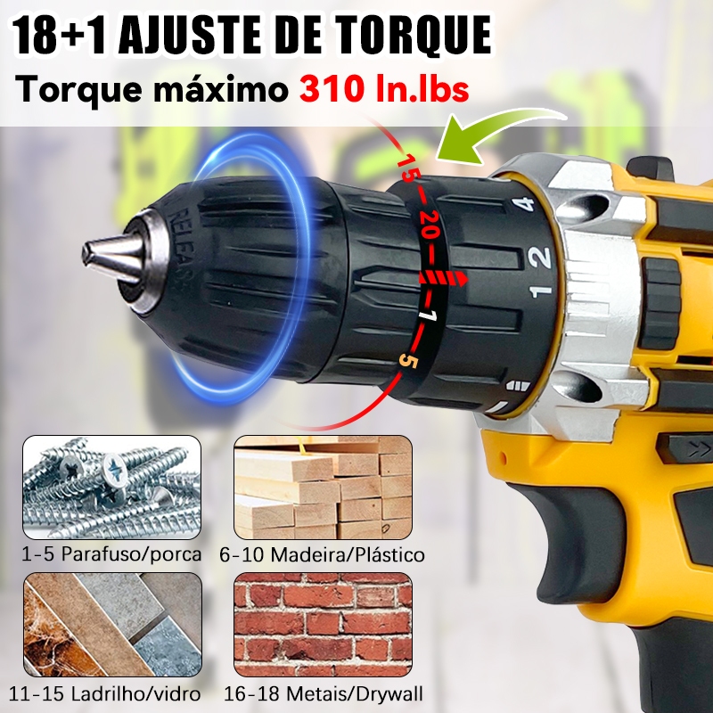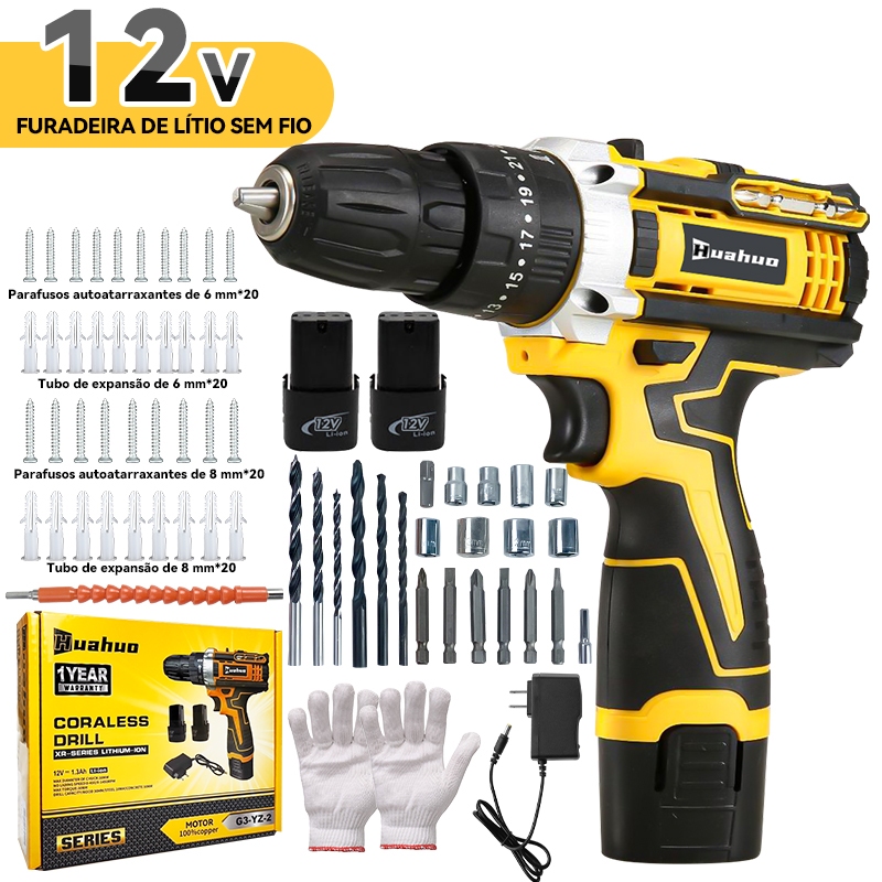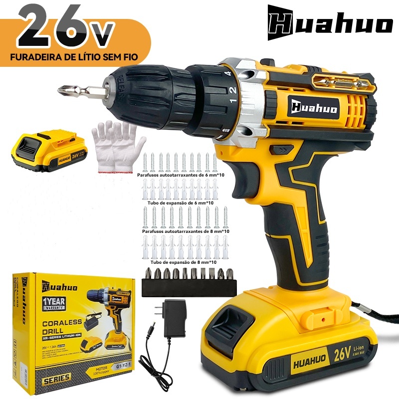 Parafusadeira A Bateria Furadeira Parafusadeira 26 2 Baterias Conjunto de acessórios de 24 peças gratuito