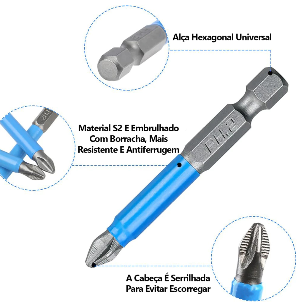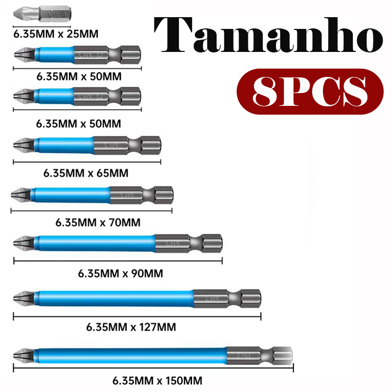 8 Pcs Chaves Bit PH2 Magnética Chave De Fenda Broca Auto Impacto Antiderrapante