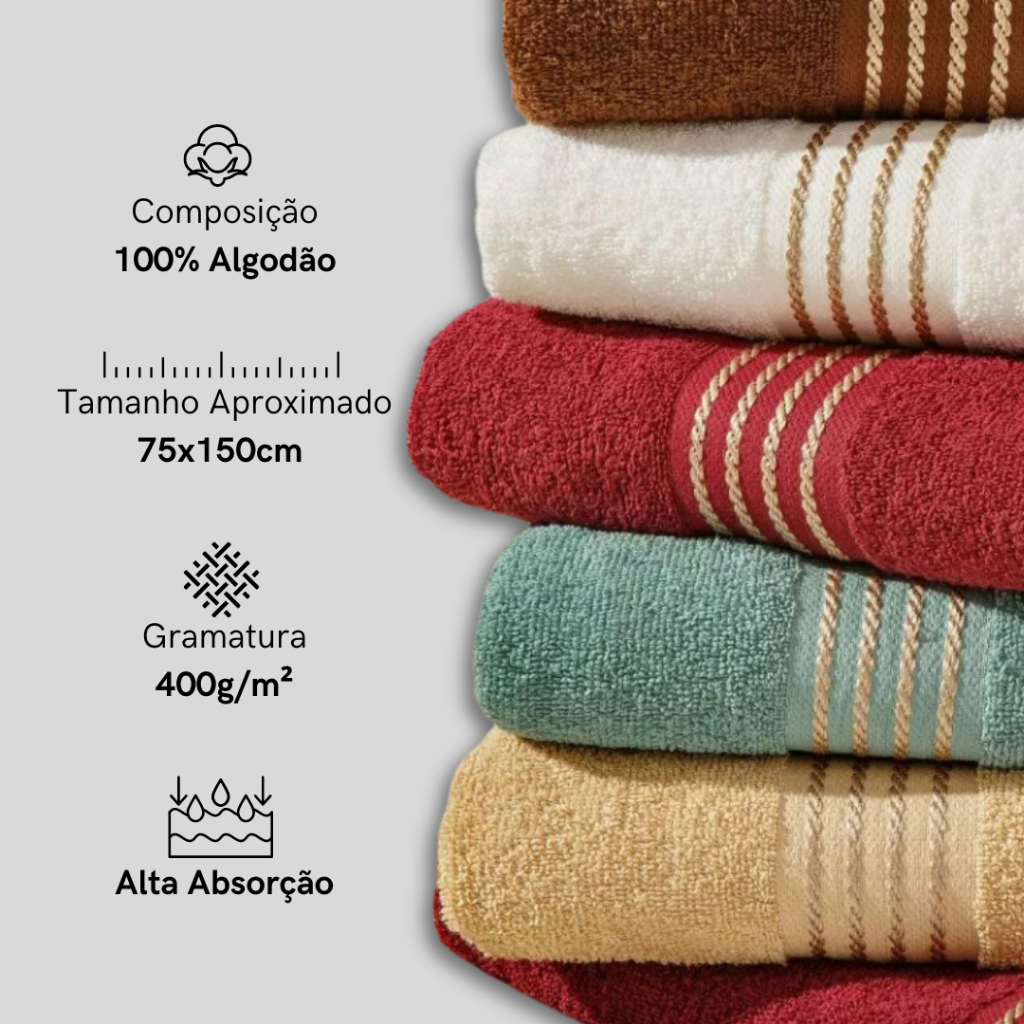 Kit 03 Toalhas de Banho Grande Modelo Sortido Soft Prime Minimalista Clássica Macia 100% Algodão