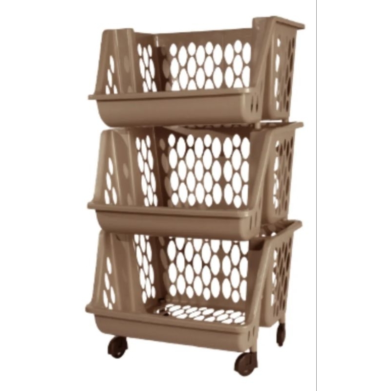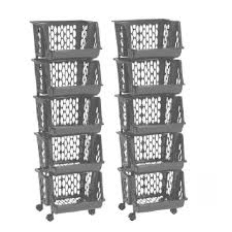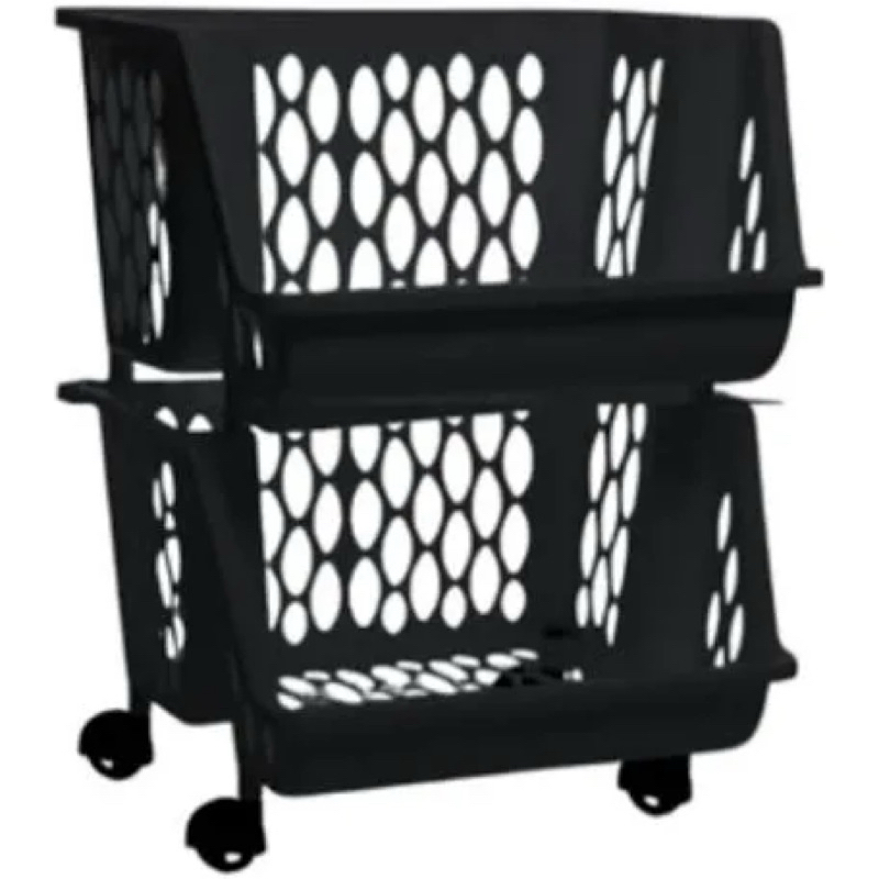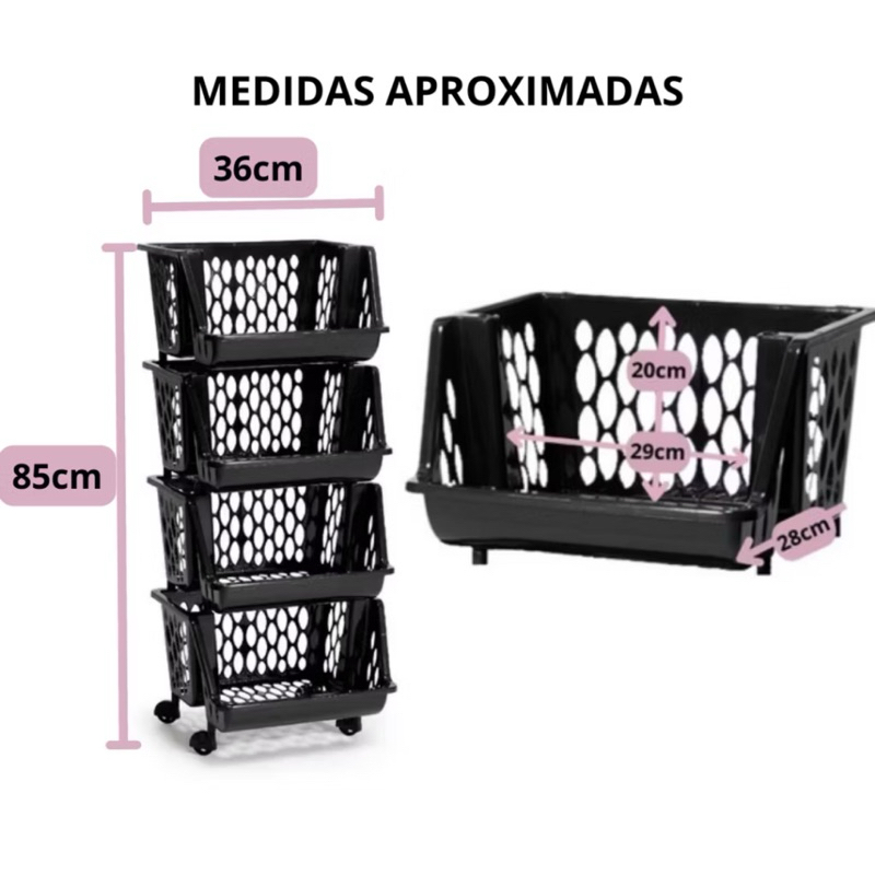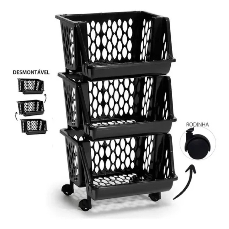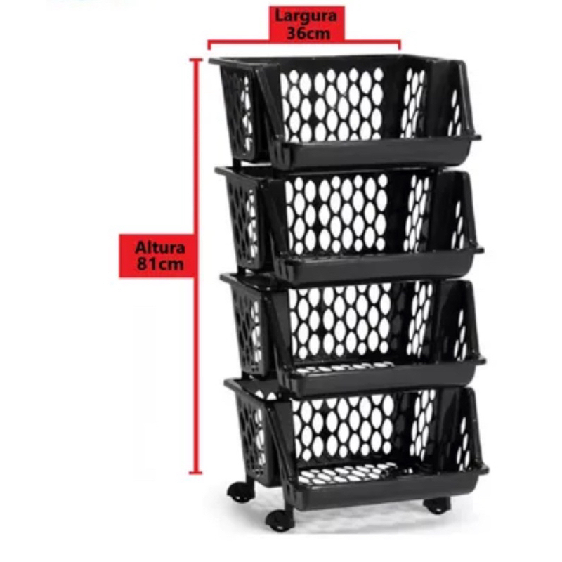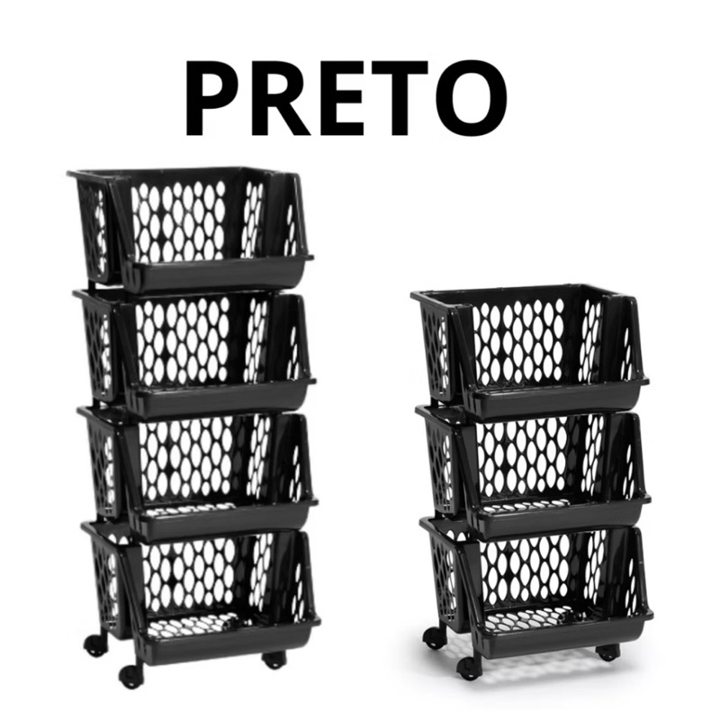 Cesto Organizador Platileira Multiuso Com Rodinha Plástico 2, 3,4 e 5 Andares Empilhável Expositor Preto Resistente