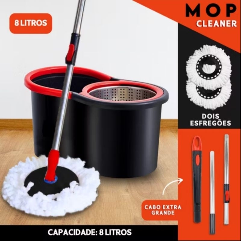 Esfregão Moop C/ Cabo de 140 Cm + 2 Refil Cesto Inox e Balde