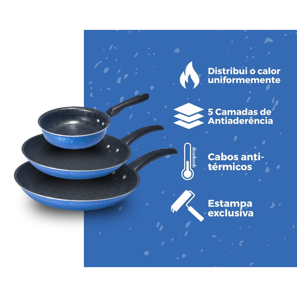 Conjunto De Frigideira 3 Peças Antiaderente Teflon