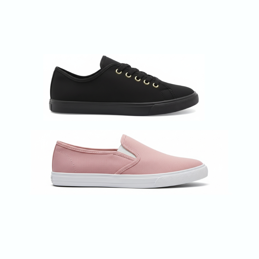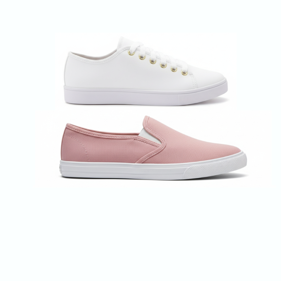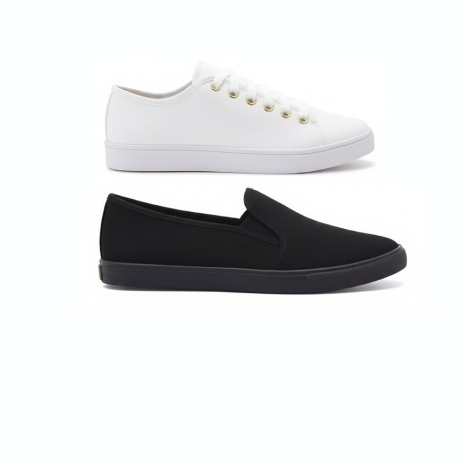 Kit Tênis Feminino Casual e Sapatilha Slip On – Estilo, Leveza e Conforto