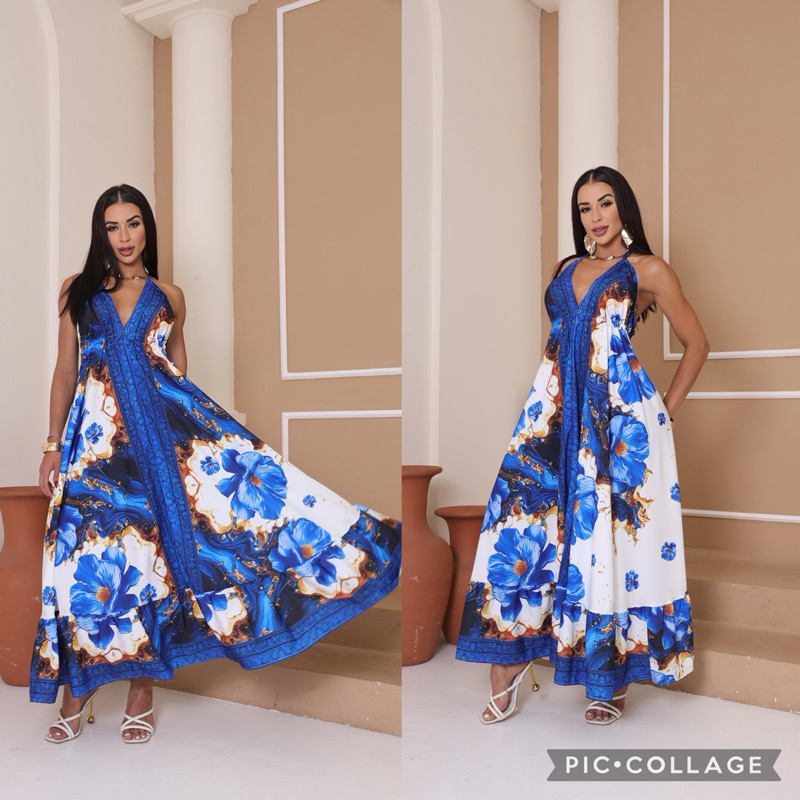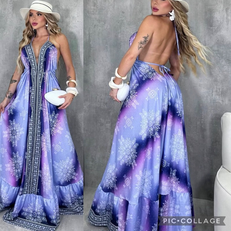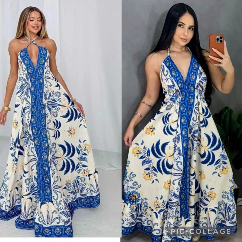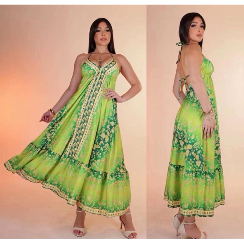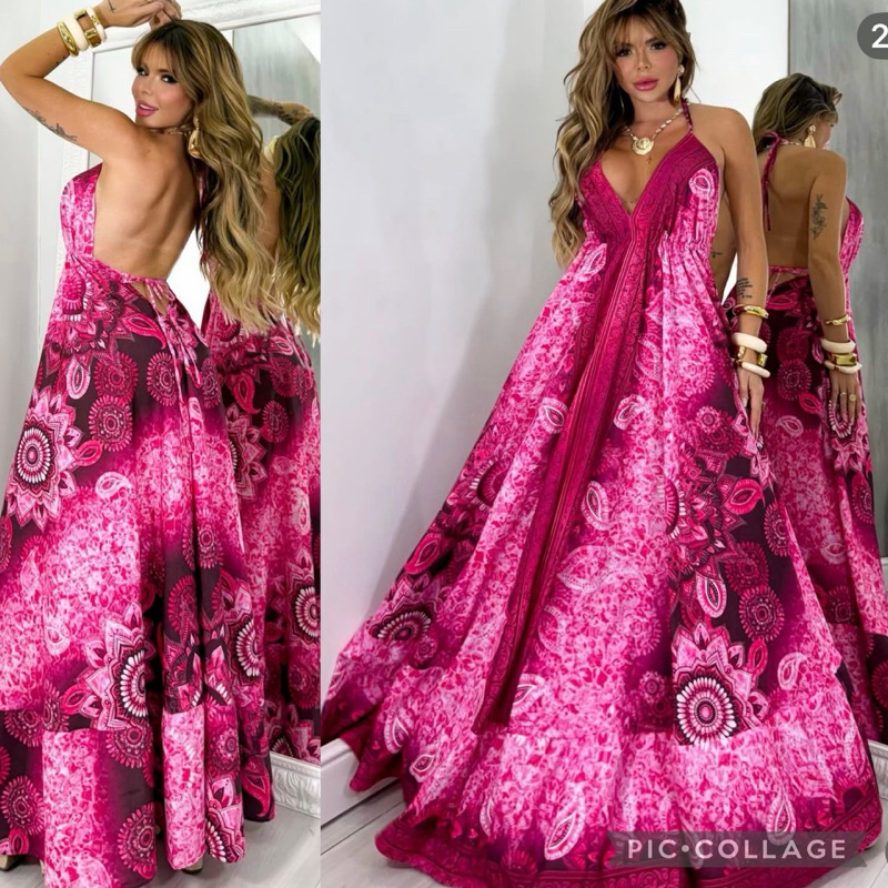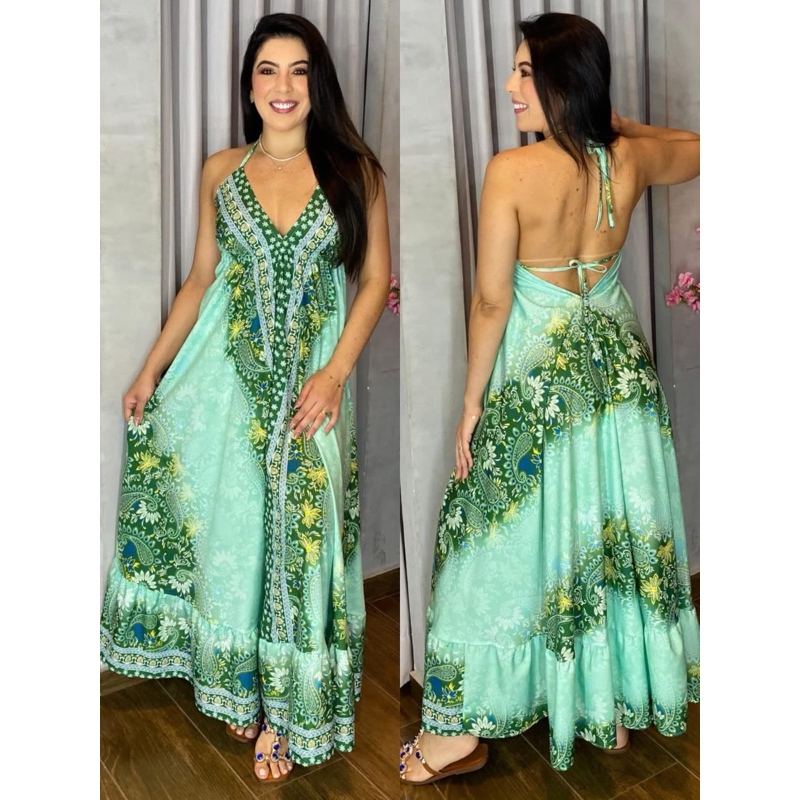 Vestido Femenina Longo Indiano Estampado Elegante Tecido Crepinho Tamanho Única Veste 38 40 42 44