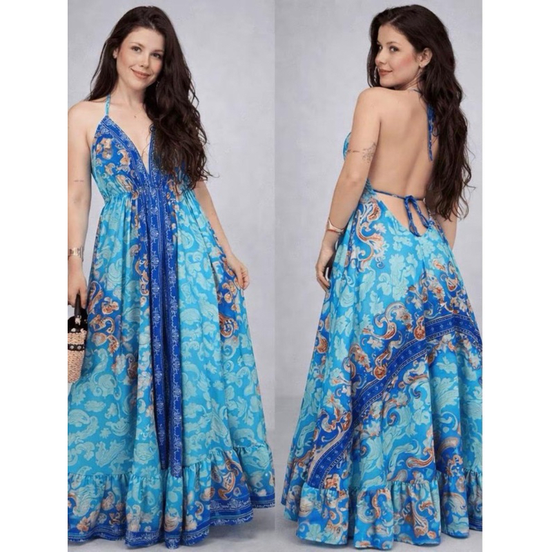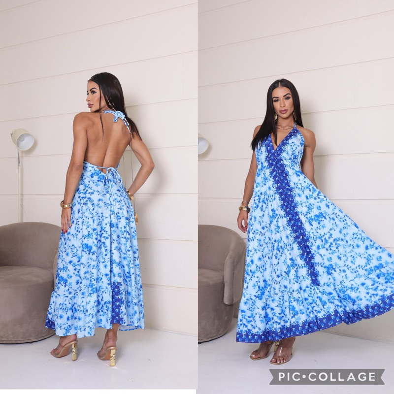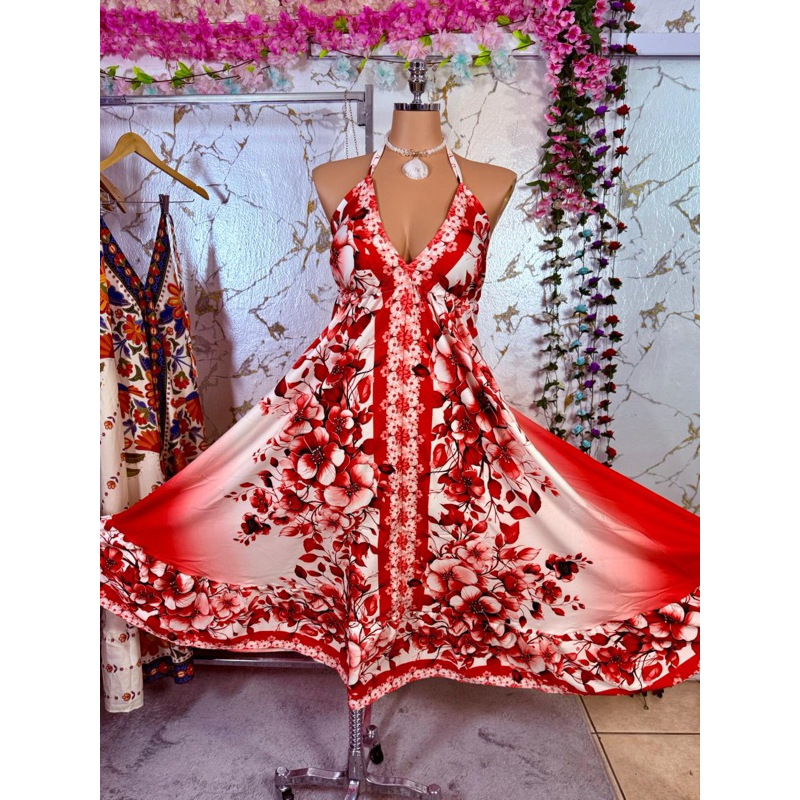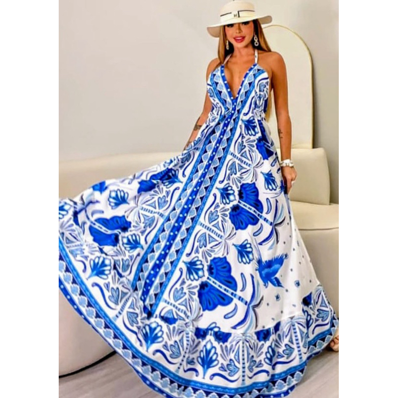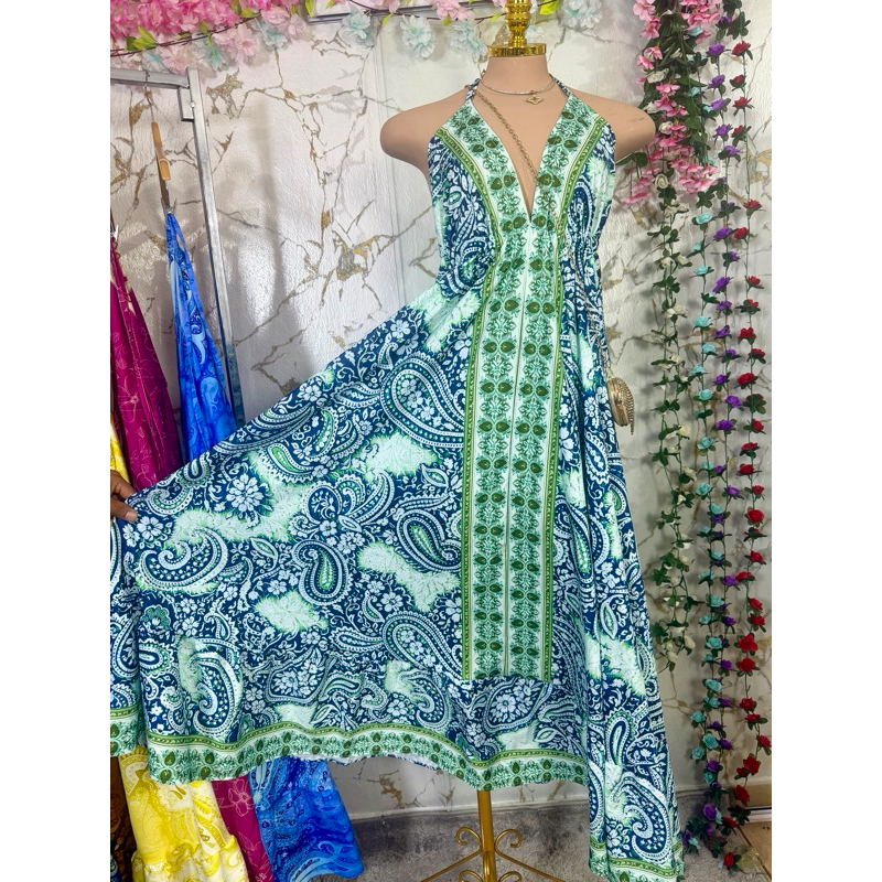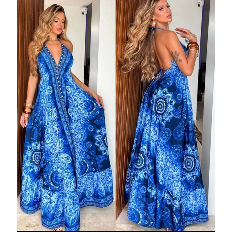Vestido Femenina Longo Indiano Estampado Elegante Tecido Crepinho Tamanho Única Veste 38 40 42 44