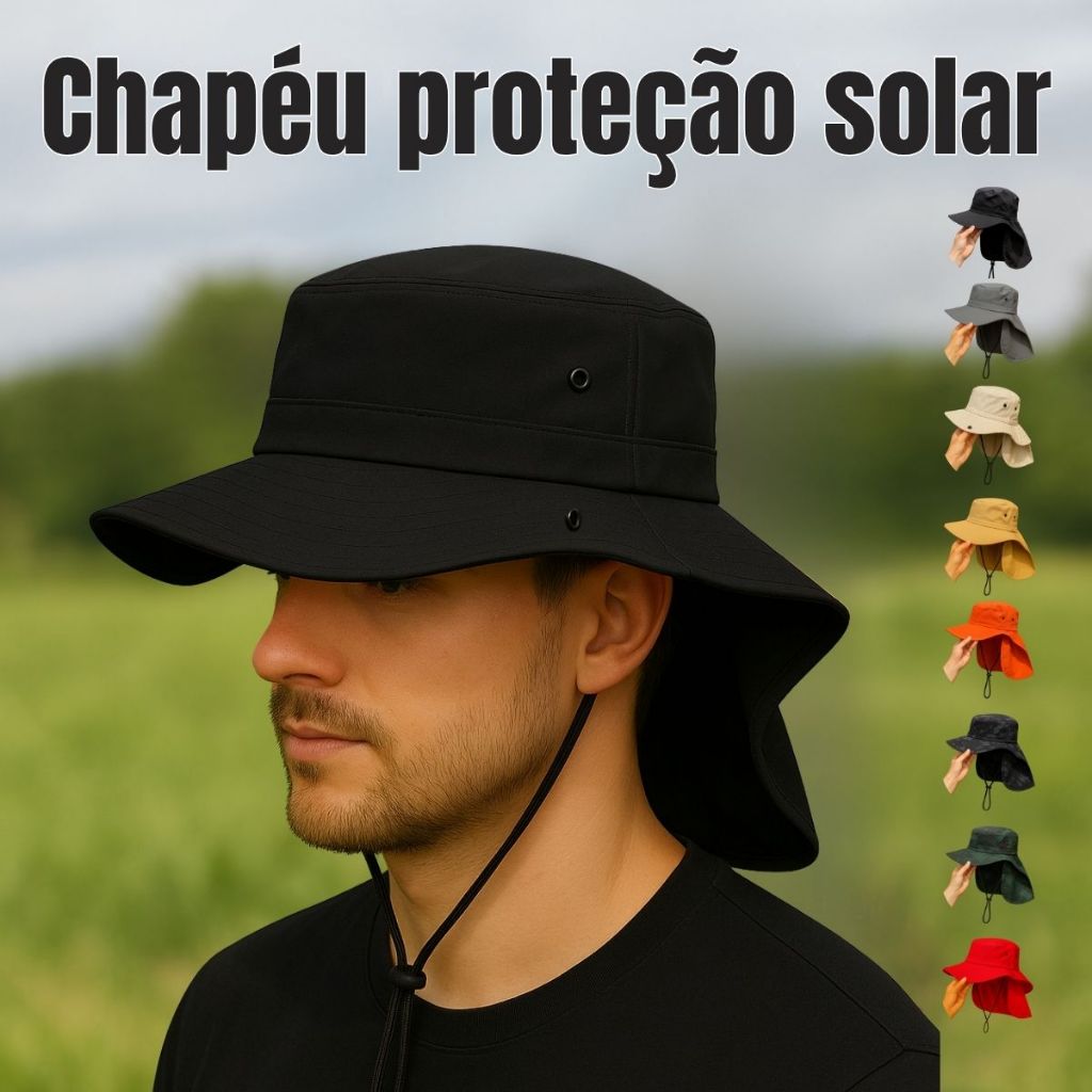 Chapéu com Protetor de Pescoço e Aba Larga – Estilo Australiano para Esportes ao Ar Livre
