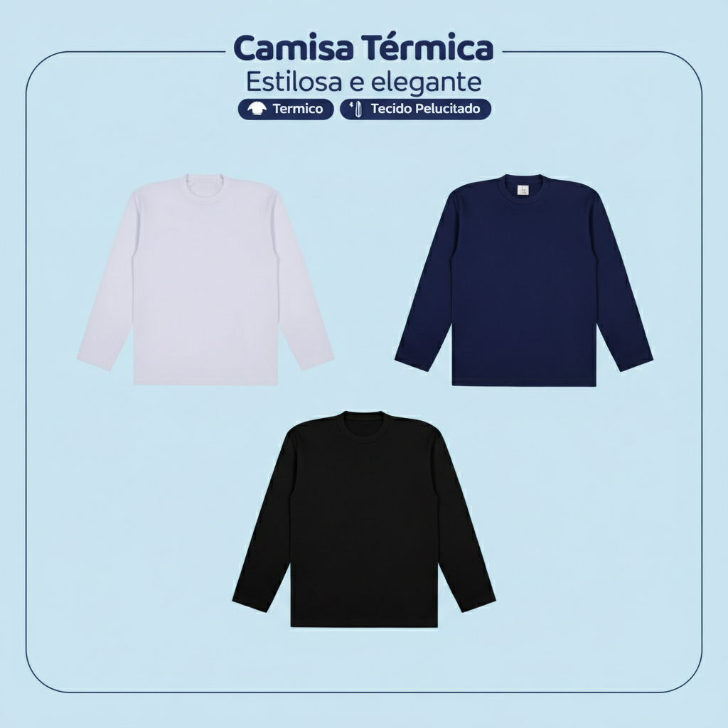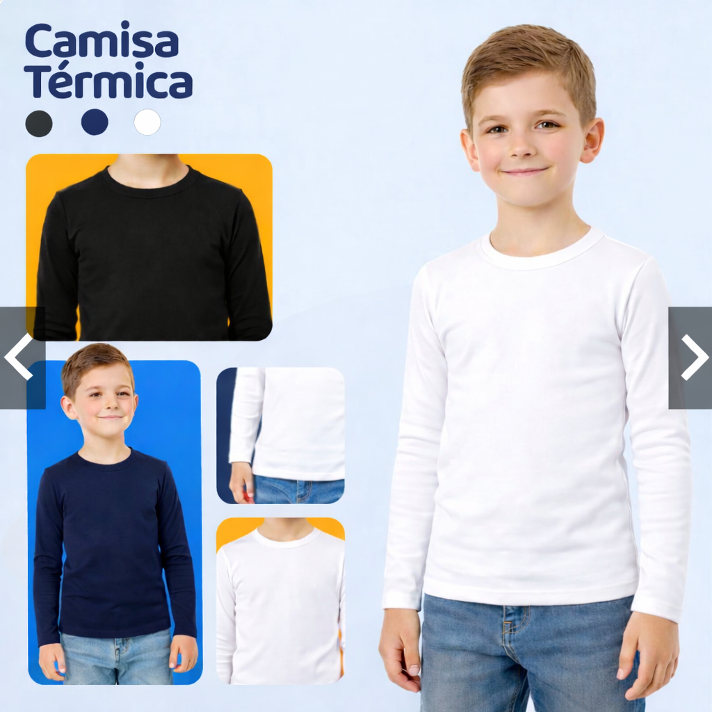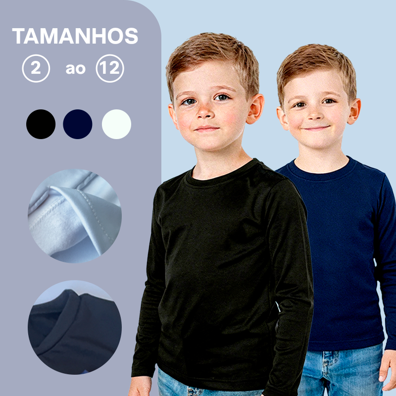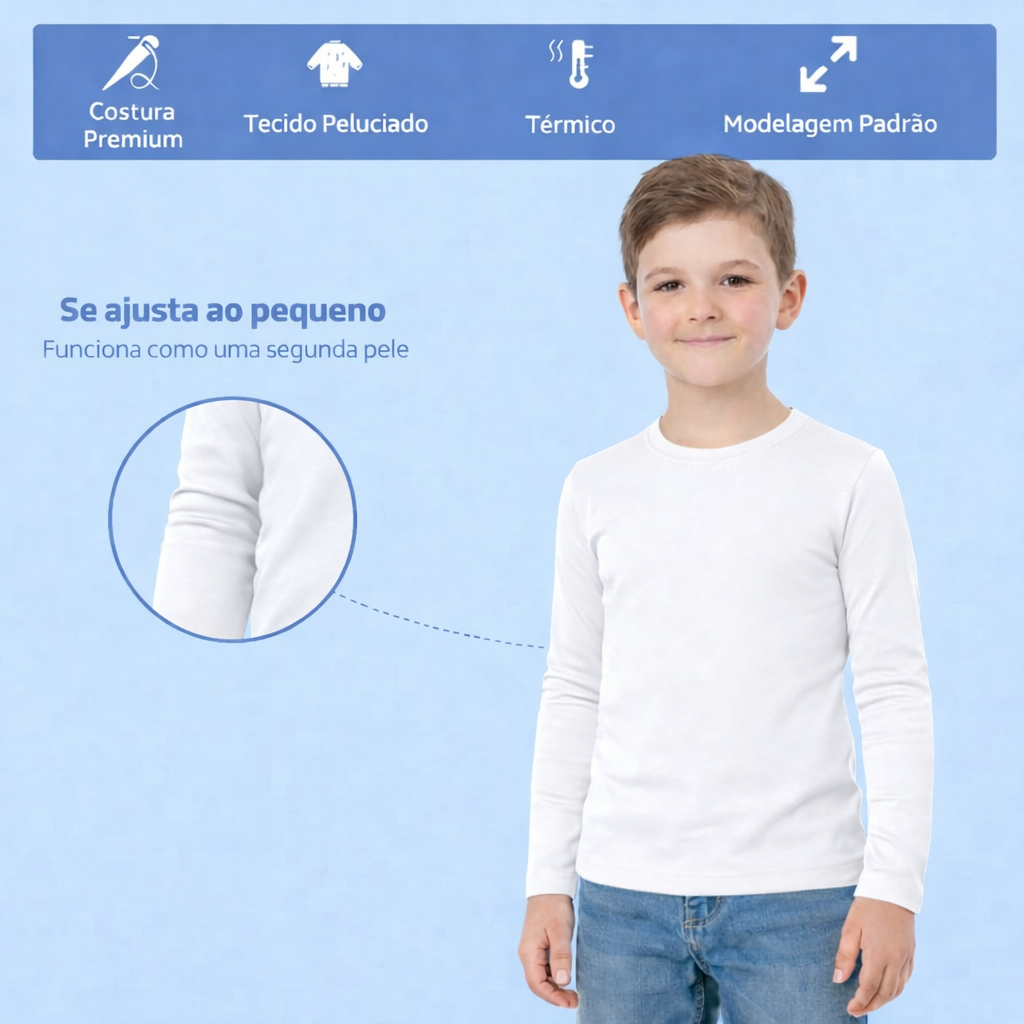 Kit de Blusas Camisetas Térmicas Peluciadas Segunda Pele Manga Longa Infantil Menino