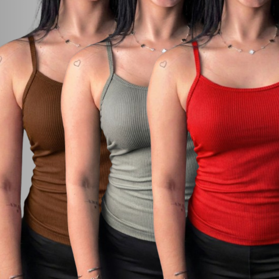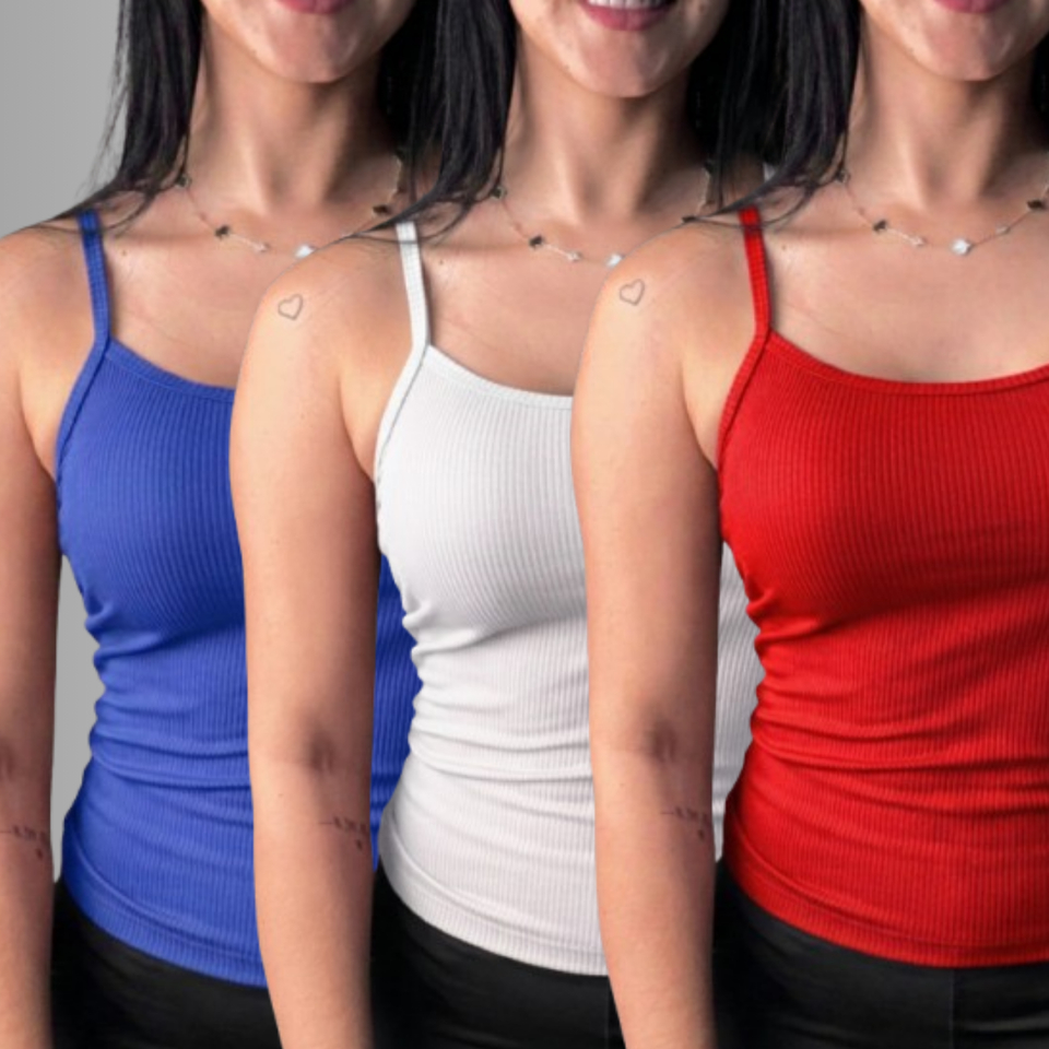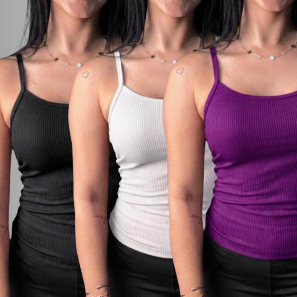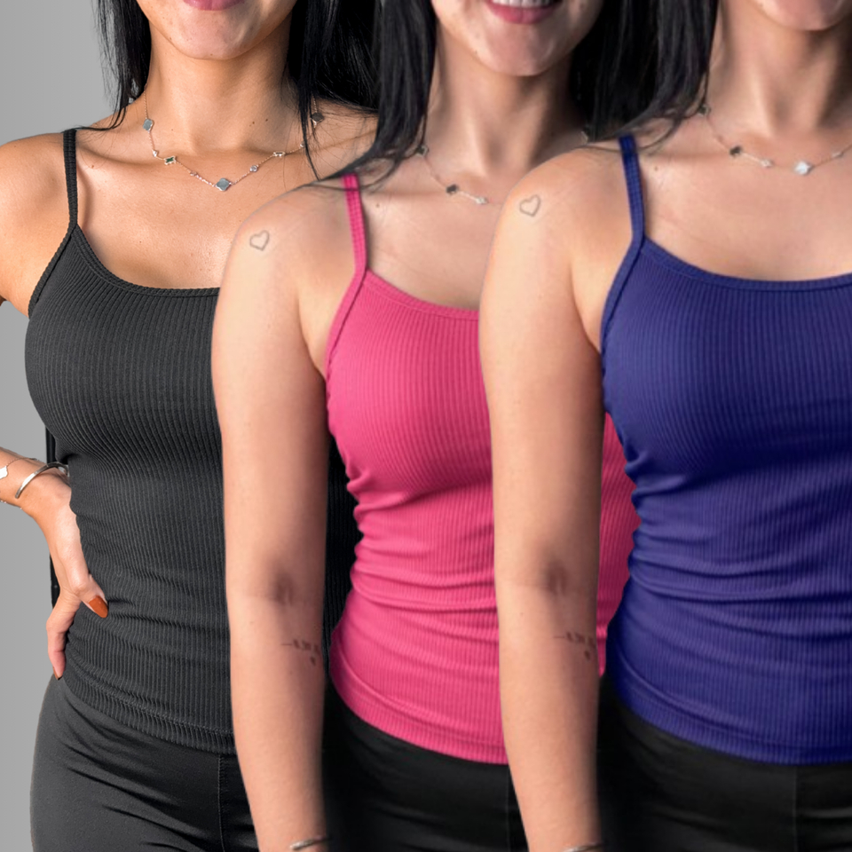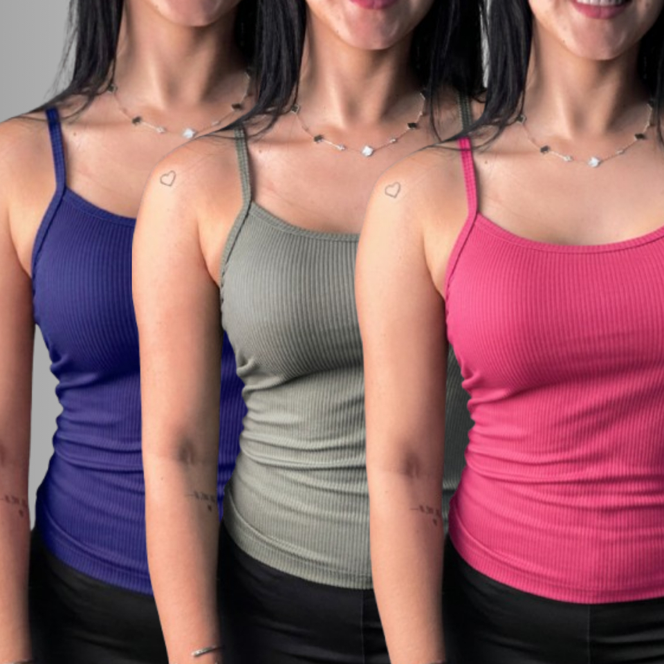 KIT 3 PEÇAS REGATA FEMININA ALCINHA CANELADA - MODA VERÃO