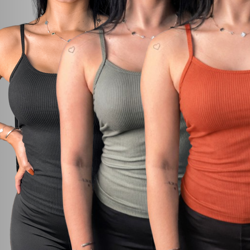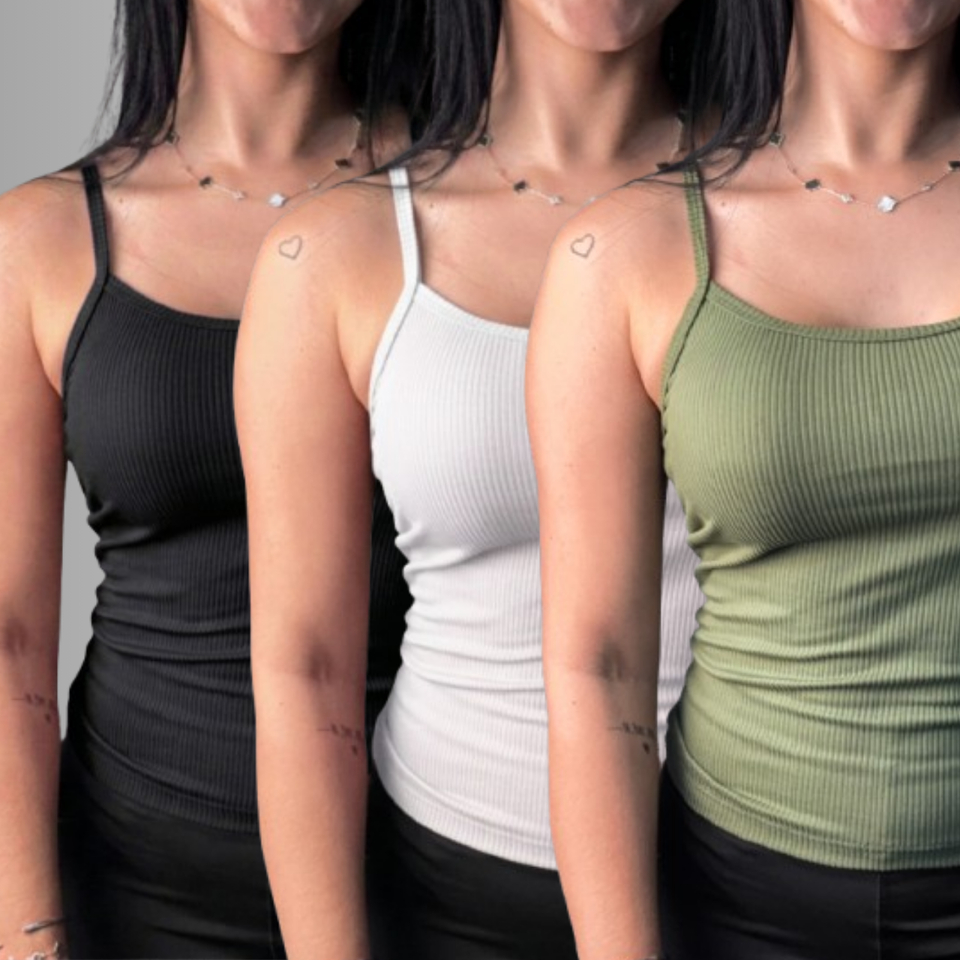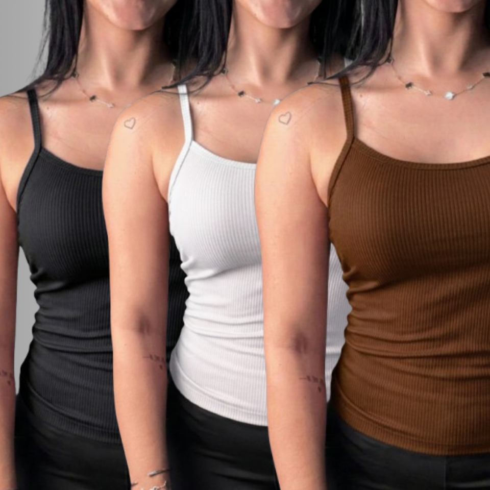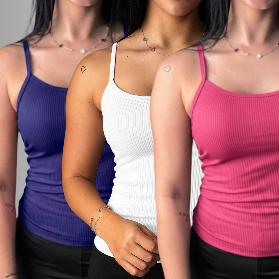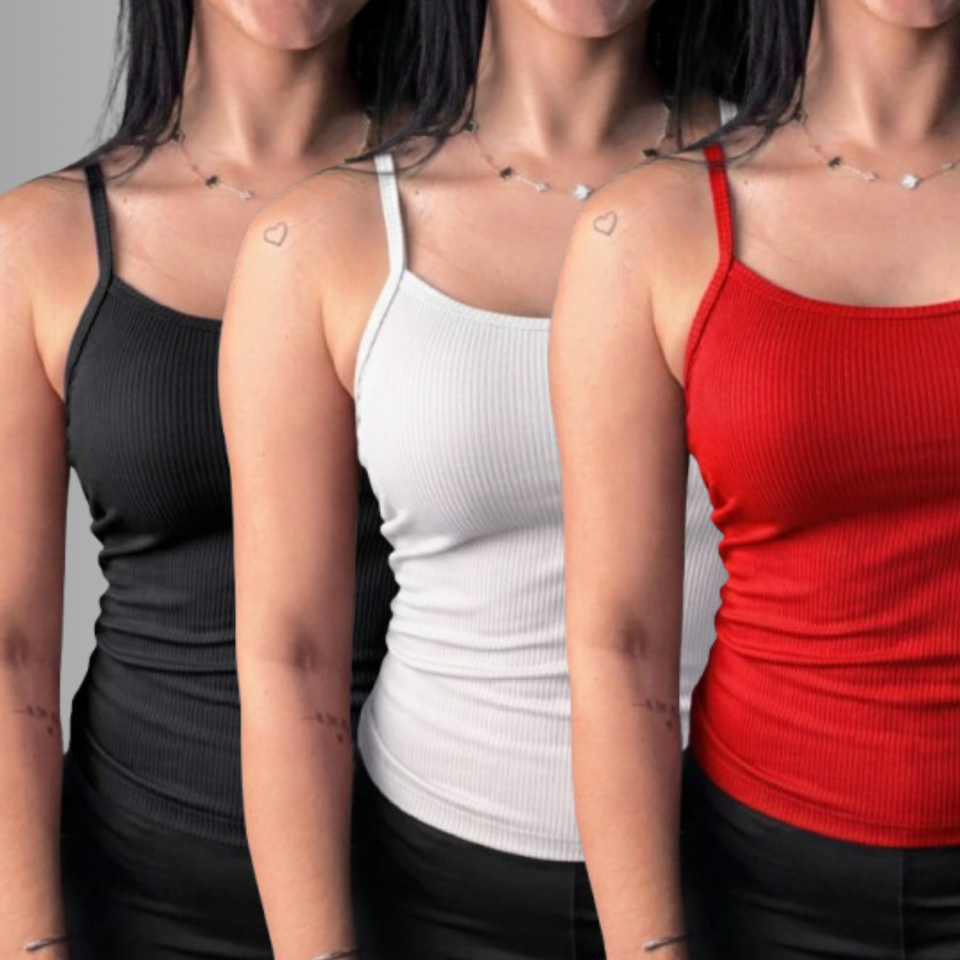 KIT 3 PEÇAS REGATA FEMININA ALCINHA CANELADA - MODA VERÃO