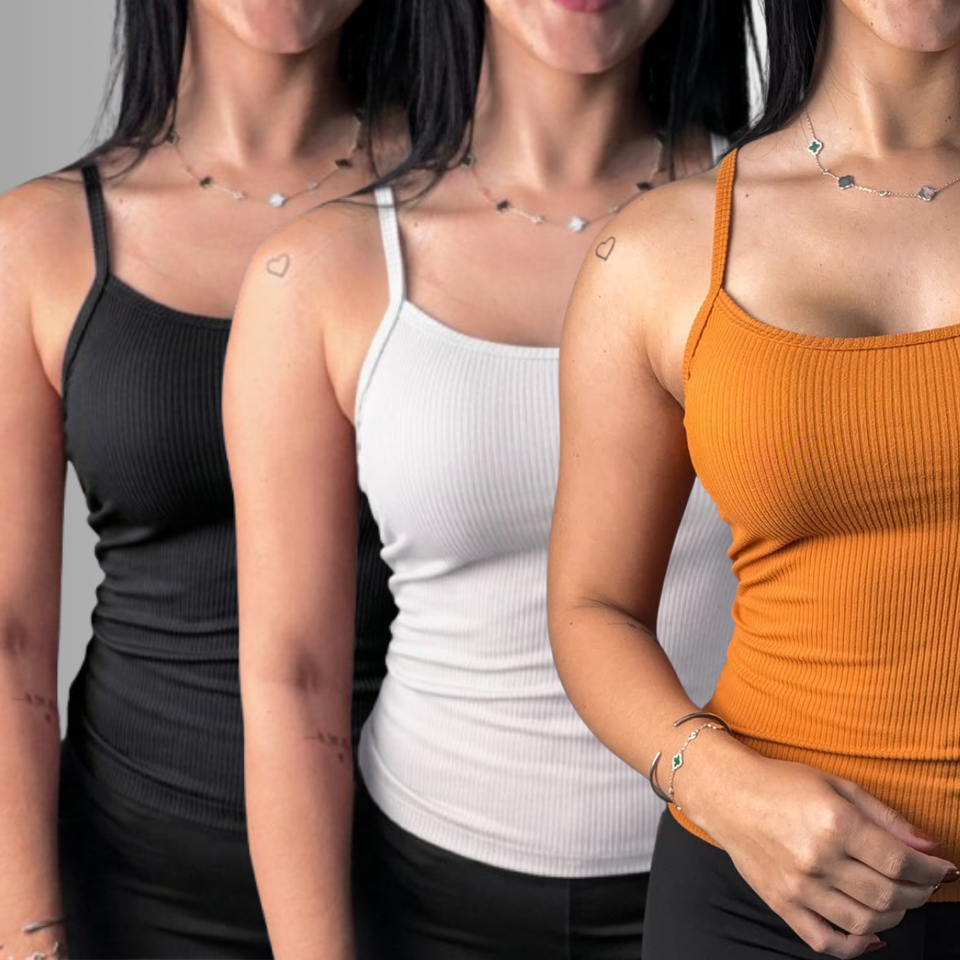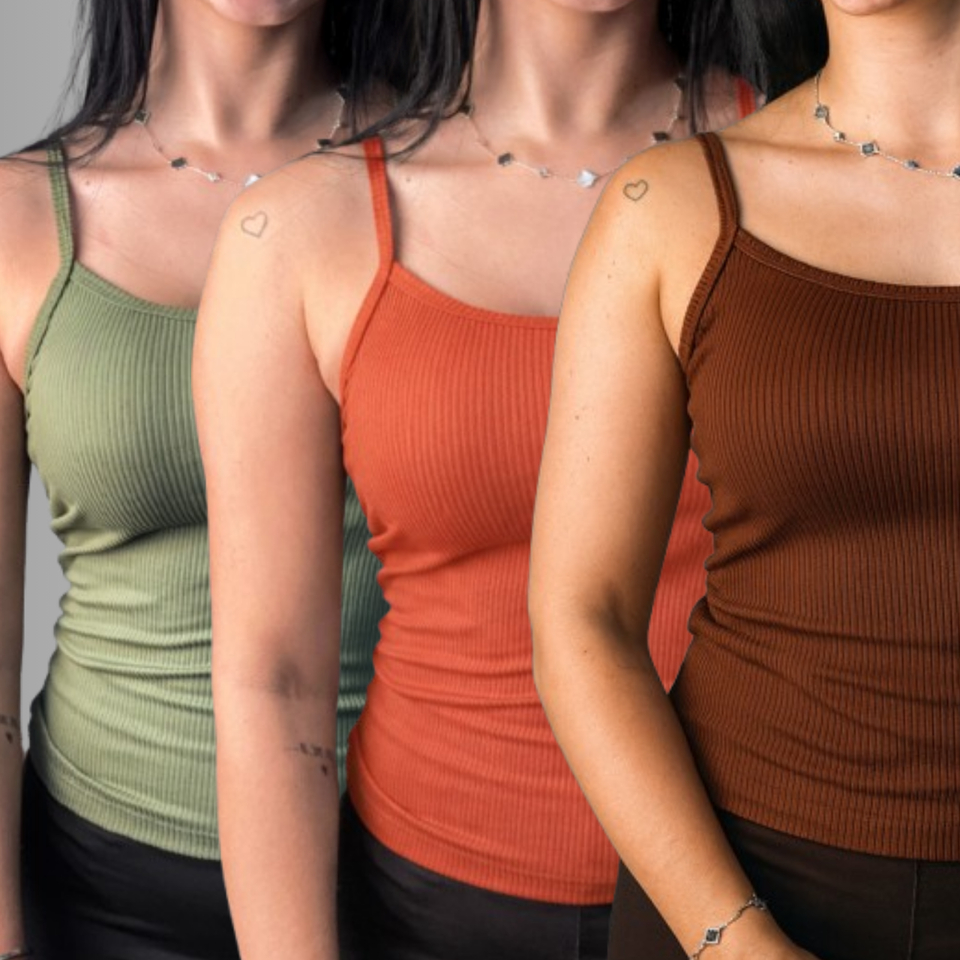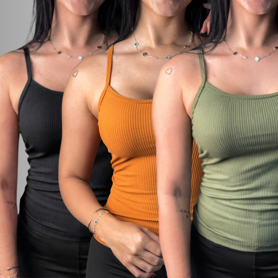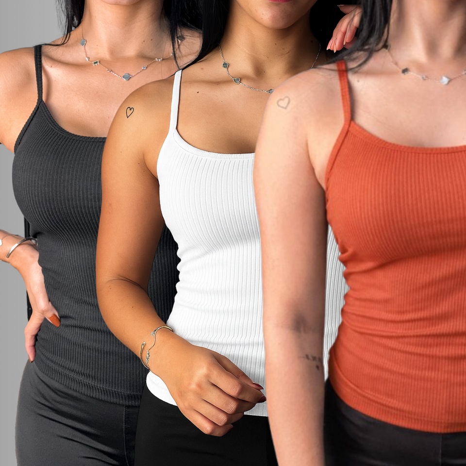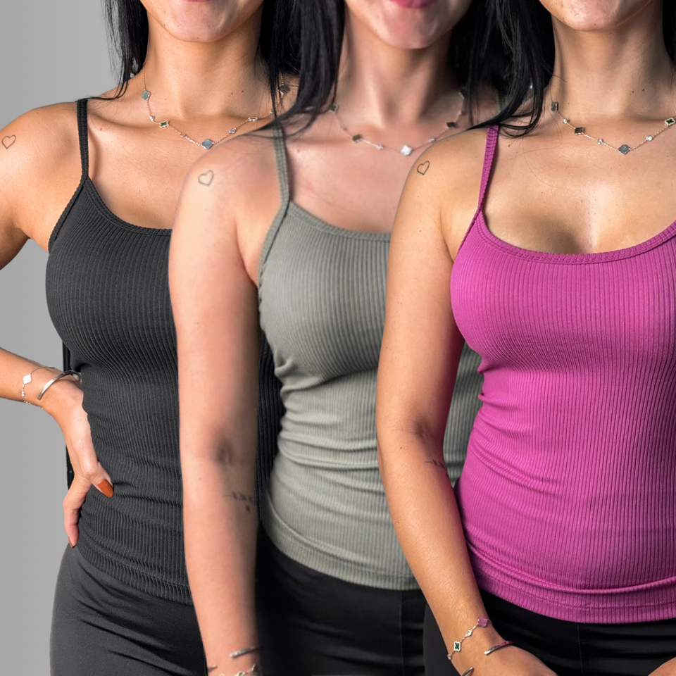 KIT 3 PEÇAS REGATA FEMININA ALCINHA CANELADA - MODA VERÃO