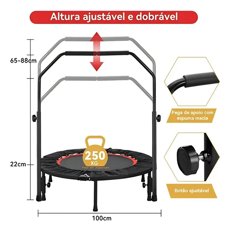 Jump Profissional Cama Elástica Com Apoio Em U 250kg, Estrutura Forte, Segurança Máxima para Família e Academia.