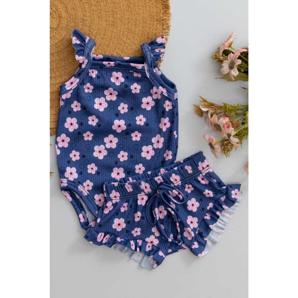 Conjunto Infantil Babado Verão Marinho Flores