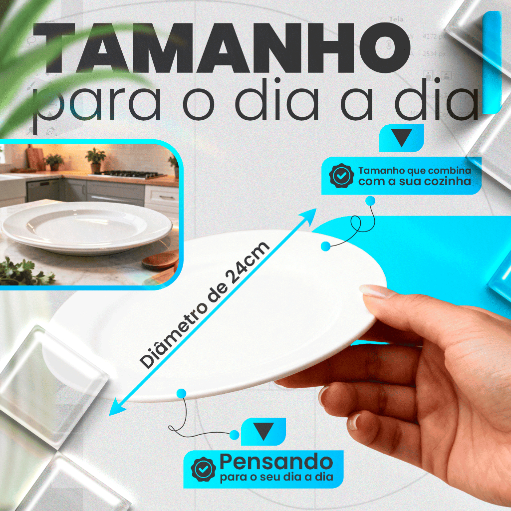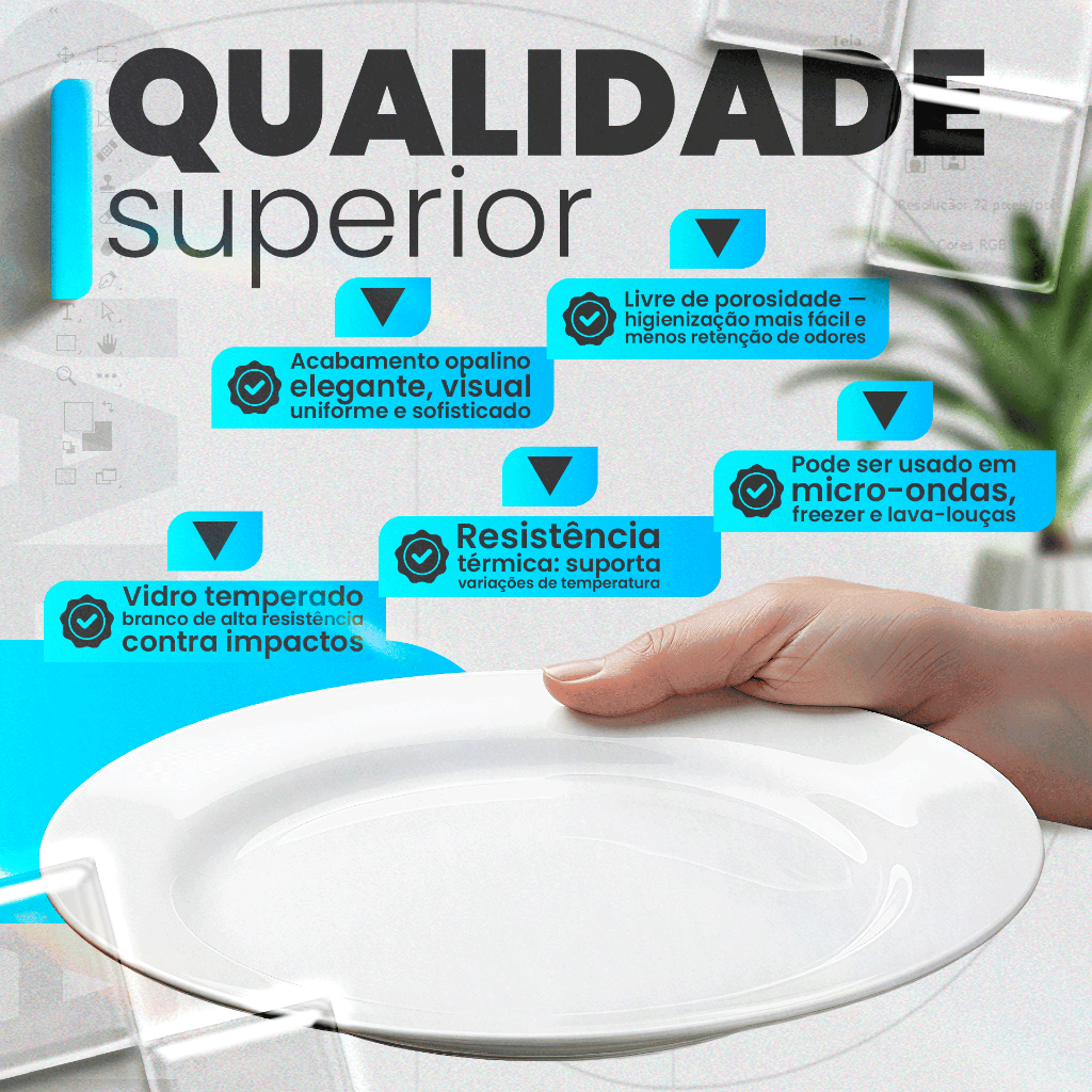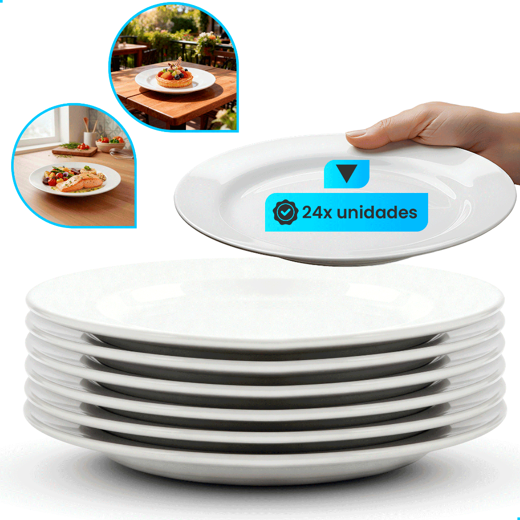 Jogo Kit 06/12/24UN Pratos Raso / Fundo Branco Vidro Duralex Menu Temperado Opaline Almoço Jantar Hotel