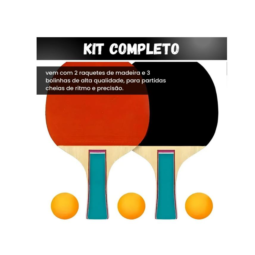 Kit Ping Pong 2 Raquetes e 3 Bolas Tênis de Mesa, Jogo de Ping Pong Kit Tênis de Mesa
