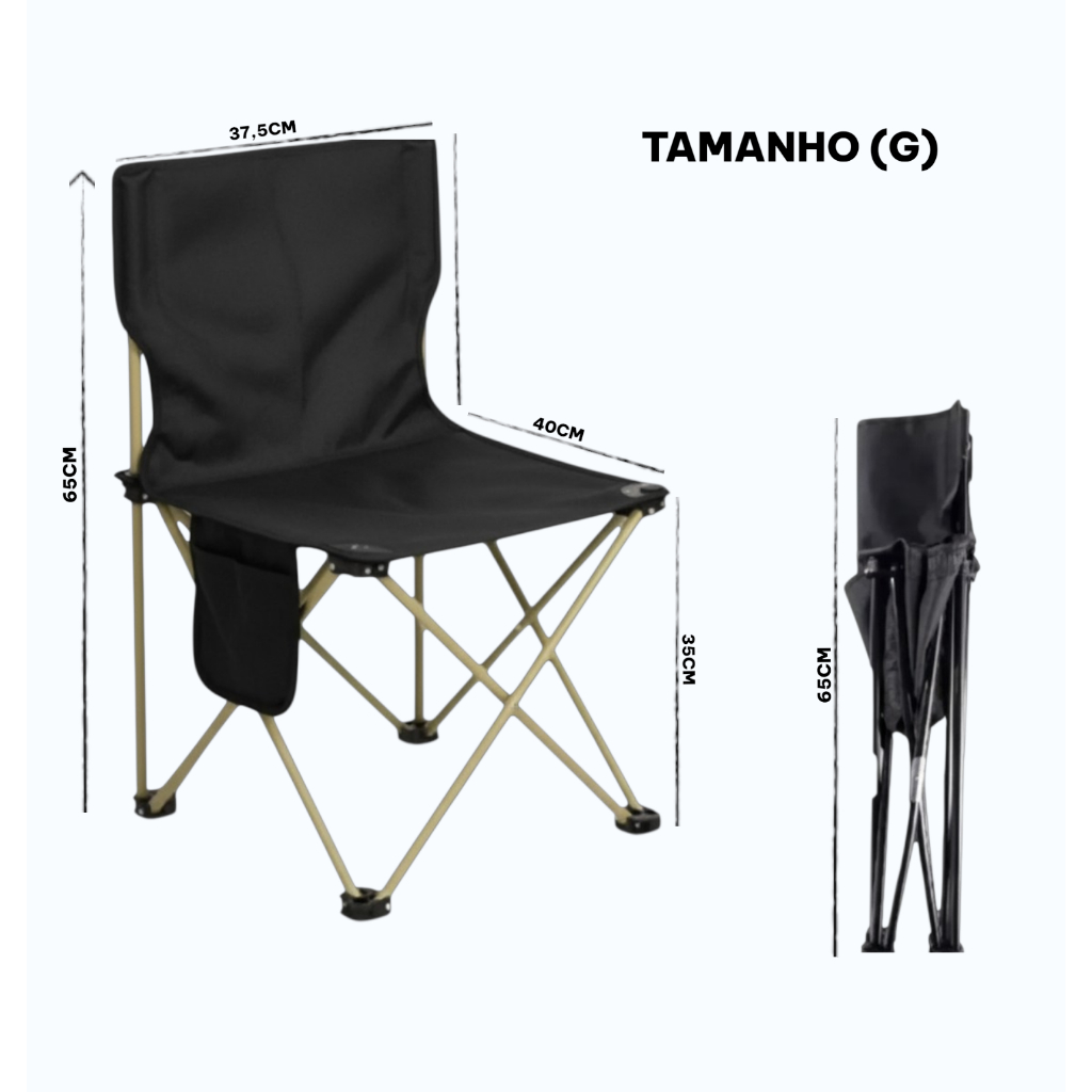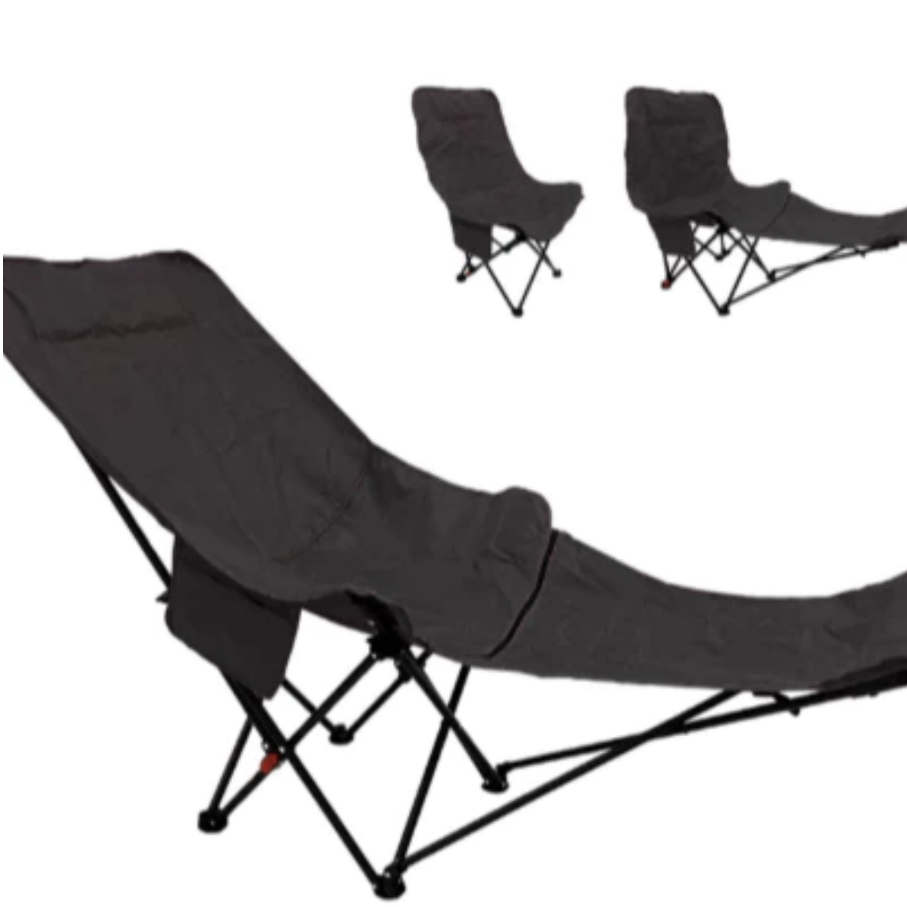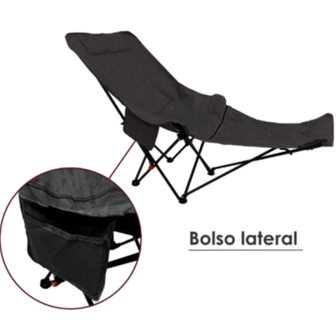 Cadeira camping Preta 3 posições dobravel 2 em 1 Apoio Para Pés Com Bolsa Resistente