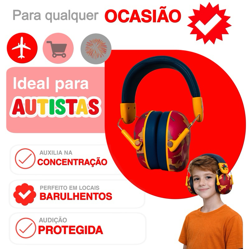 Abafador 32 DB Autismo Infantil Fone Protetor de Som Ouvido Auricular Ruido Super Confortavel Tdah Tea Autista