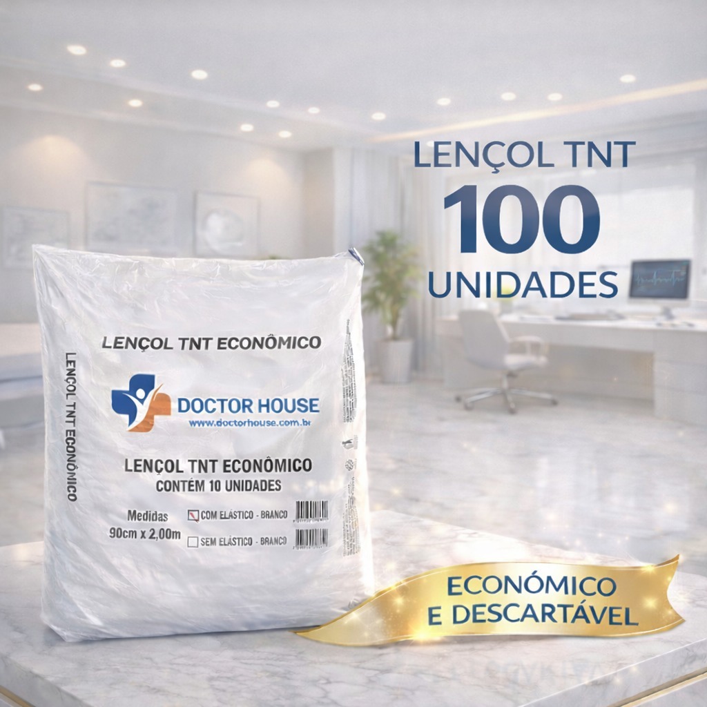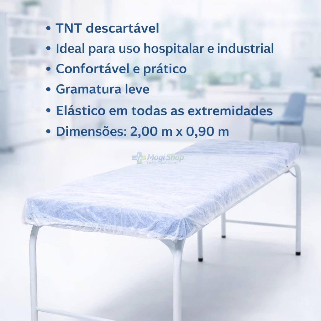 100 Lençol Descartável TNT Branco com Elástico para Maca 100Un 2,00x0,90 Uso Clínico Consultório