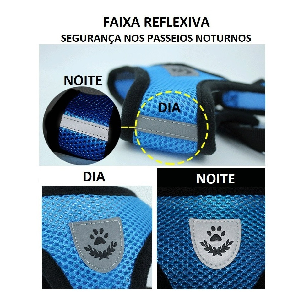 Colete Coleira Peitoral Com Guia Cachorro Cães Gato Pet Refletivo dia e noite