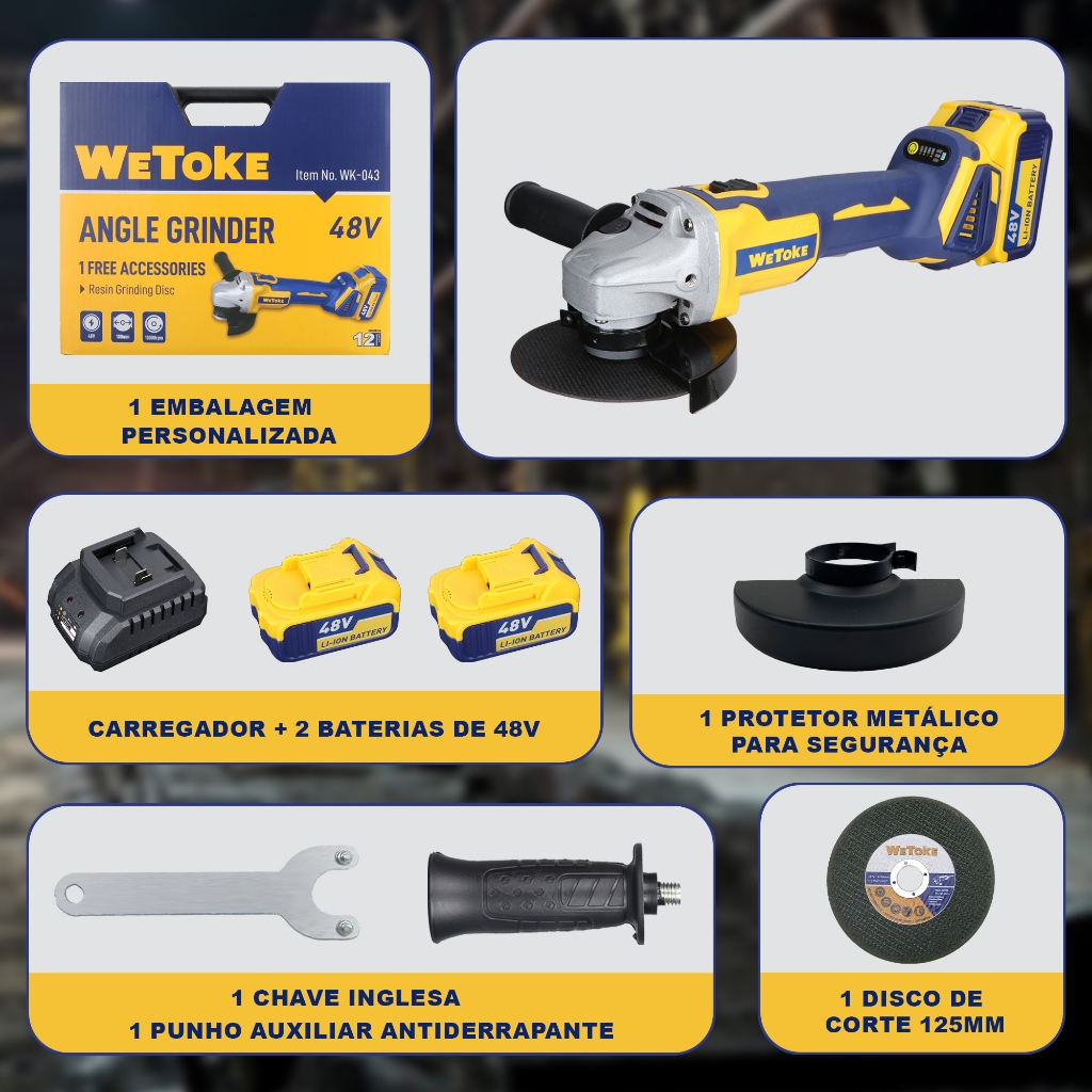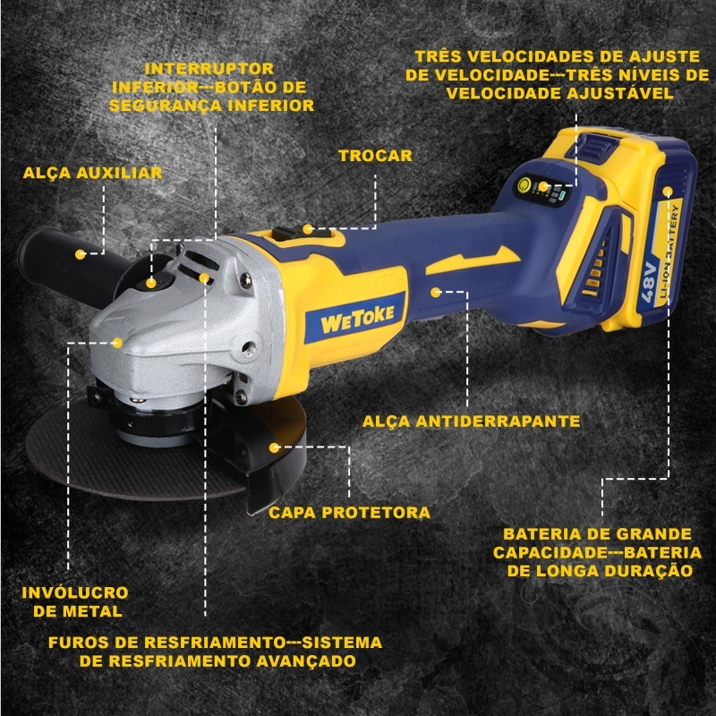 Esmerilhadeira Lixadeira Angular 48v Brushless 2 Baterias