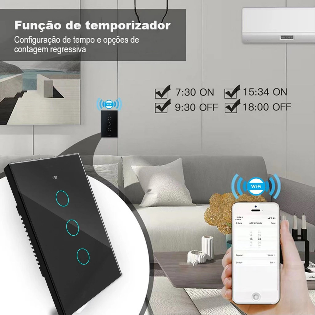 Interruptor inteligente de toque wifi sem fio neutro remoto luz de ganga controle de voz WiFi Smart Automação-Techo Pro