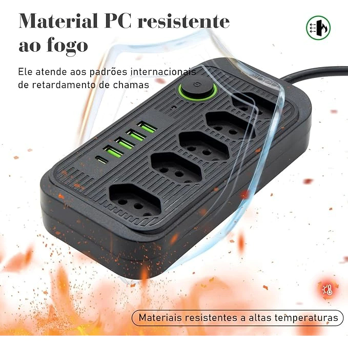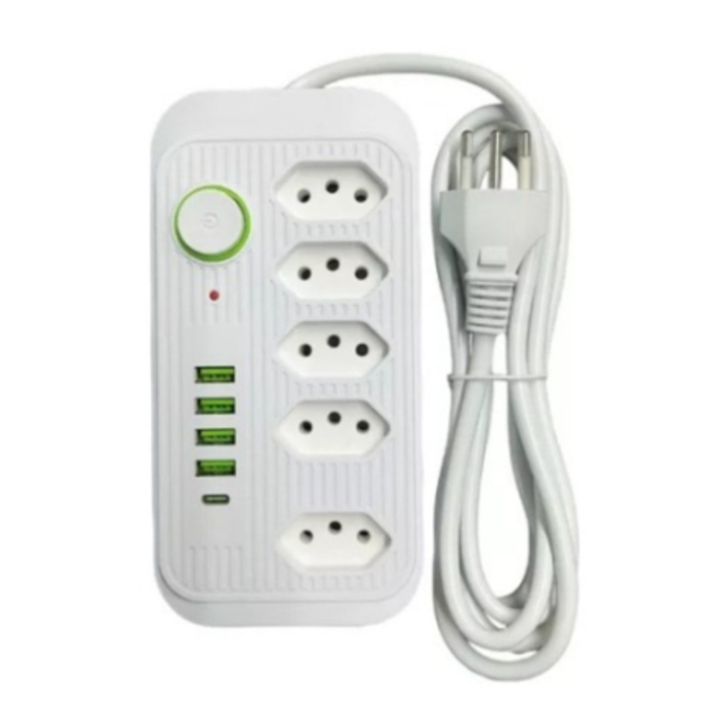 Extensão Filtro De Linha Segurança 5 Tomadas 4 Usb E Usb C Envio Imediato-Techo Pro