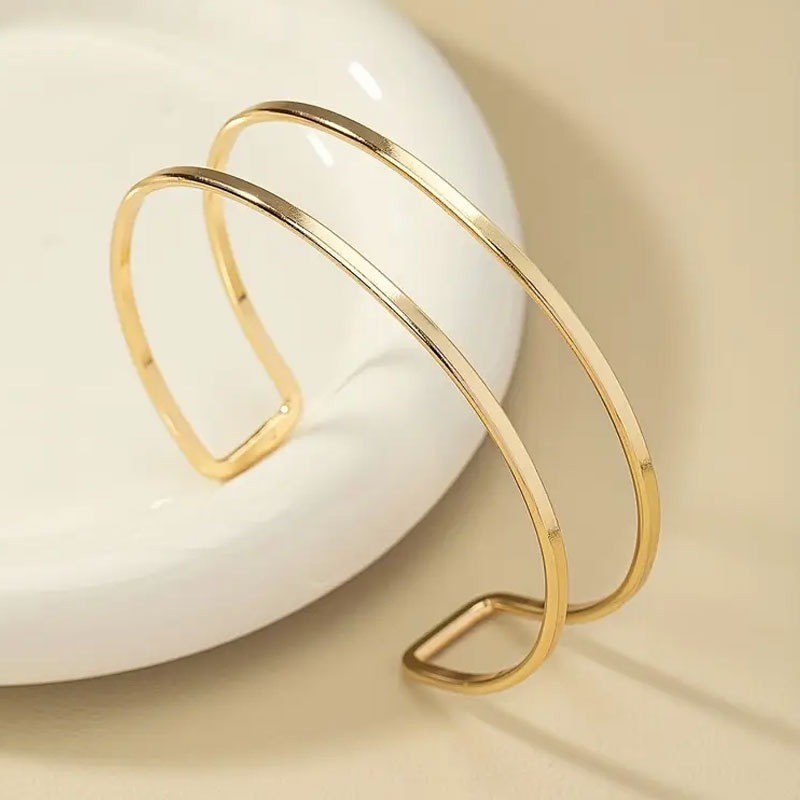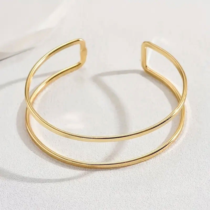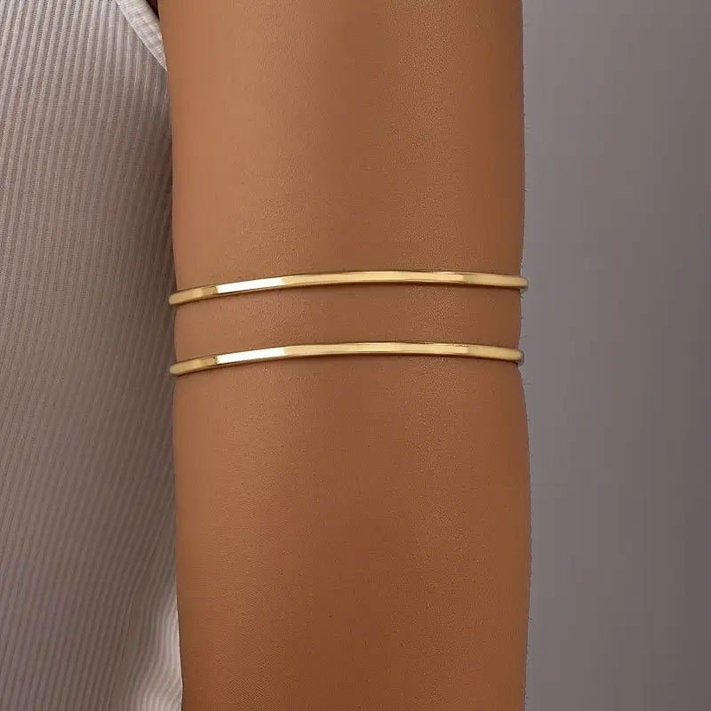 Bracelete de Braço Feminino Duplo Liso Banhado em Ouro e Prata, Ajustável e Estilo Minimalista