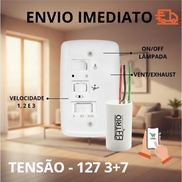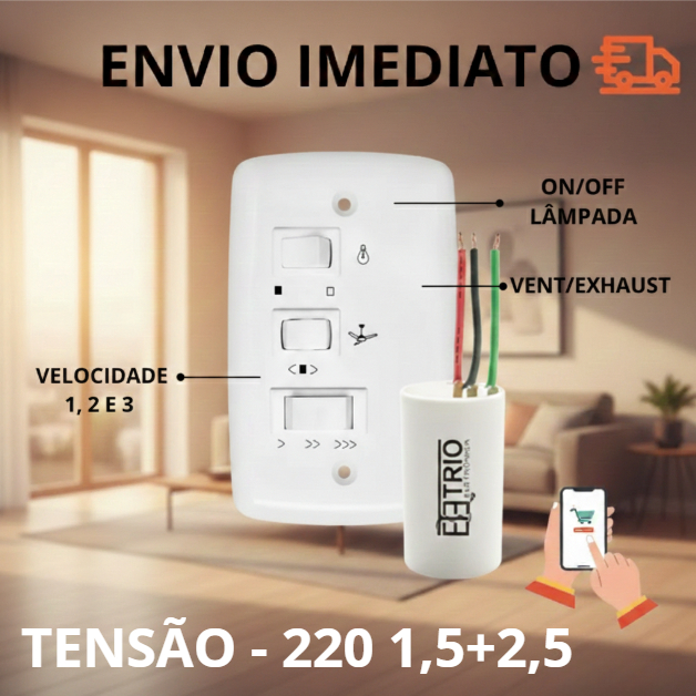 Controle de Velocidade Ventilador de Teto – Capacitivo 127V ou 220V