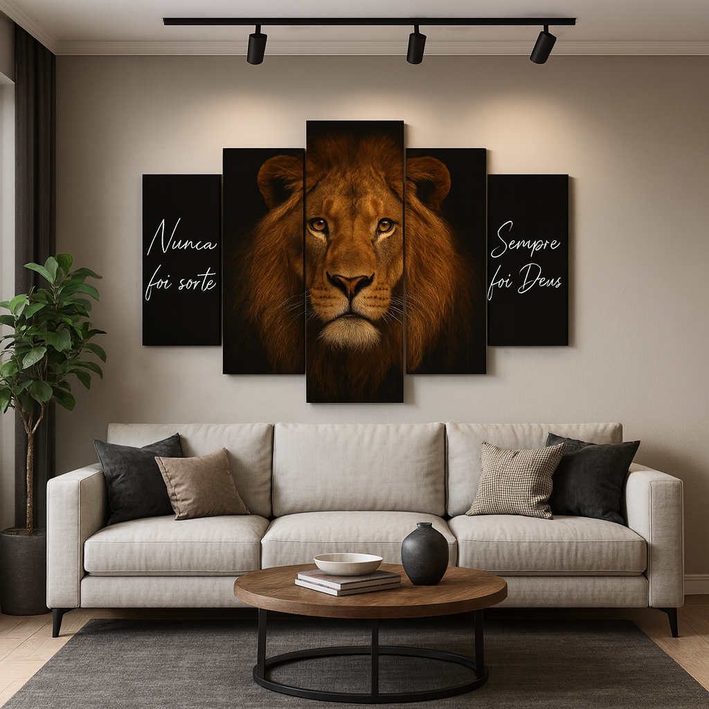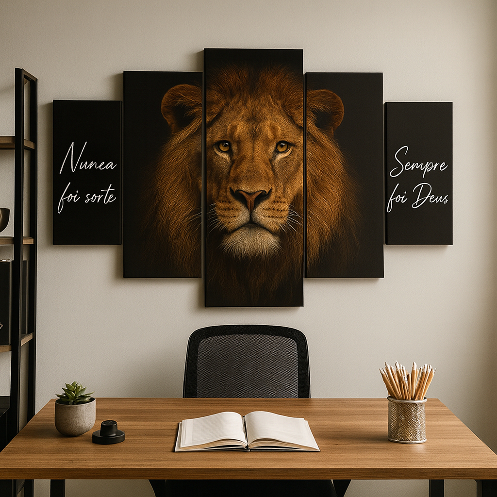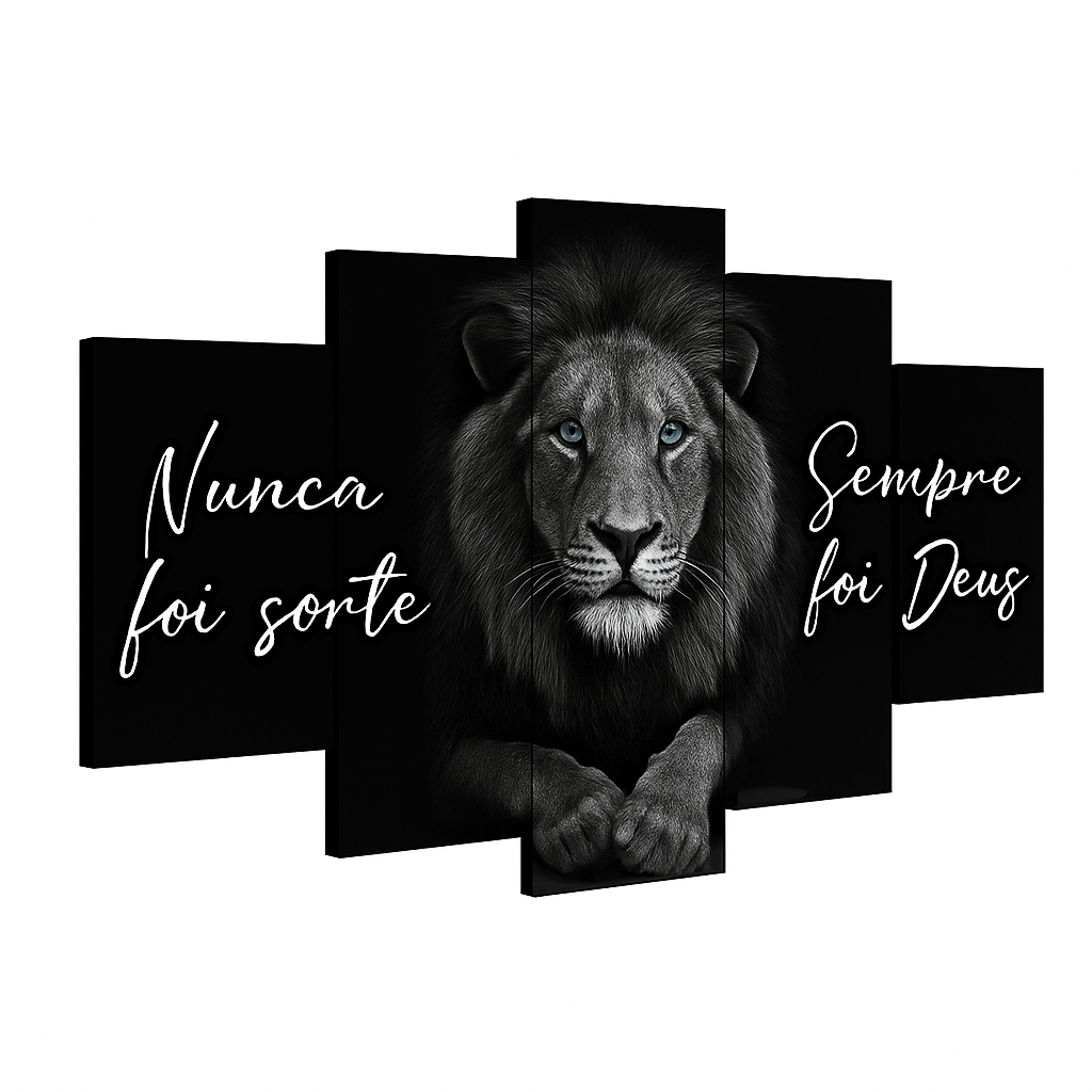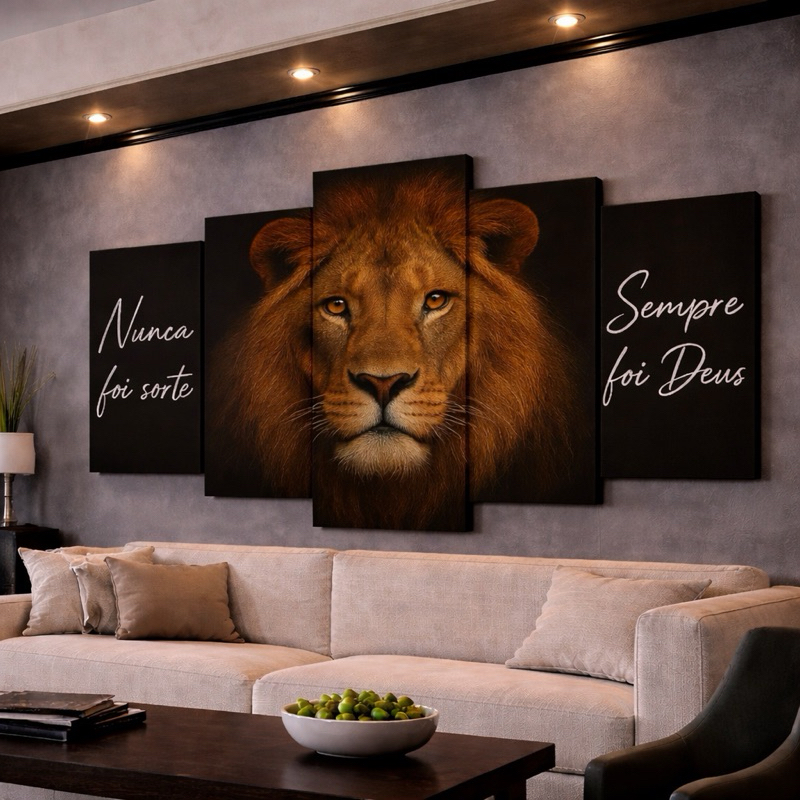 Quadros Decorativos Grande Leão de Judá Sala Quarto Nunca Foi Sorte Sempre Foi Deus