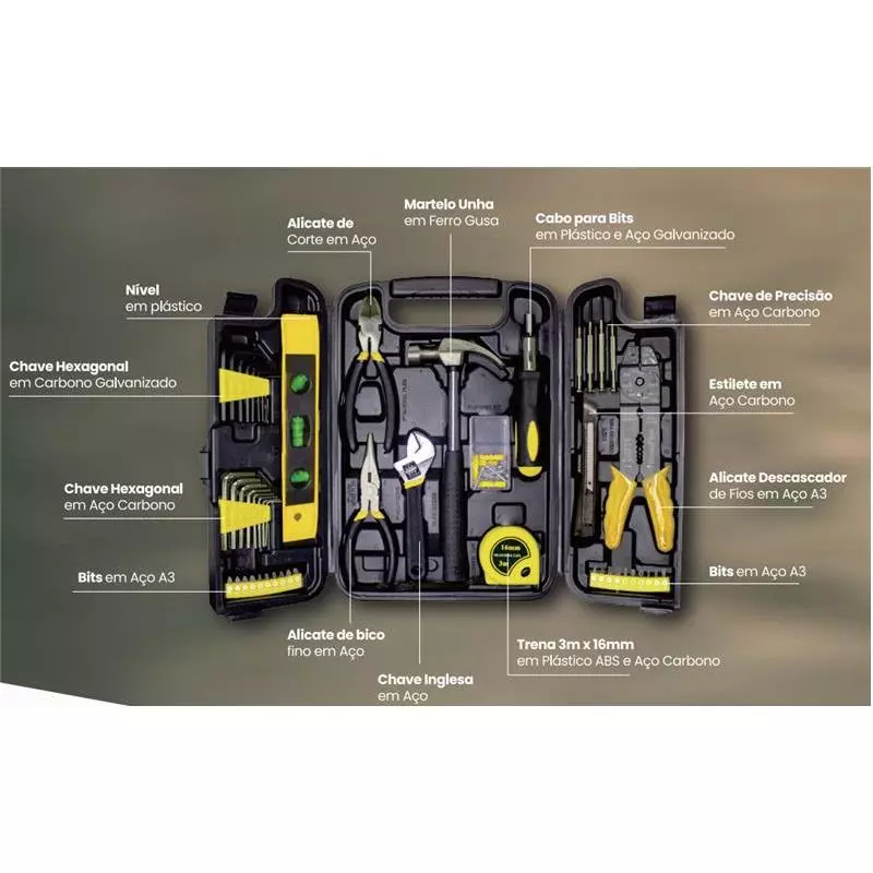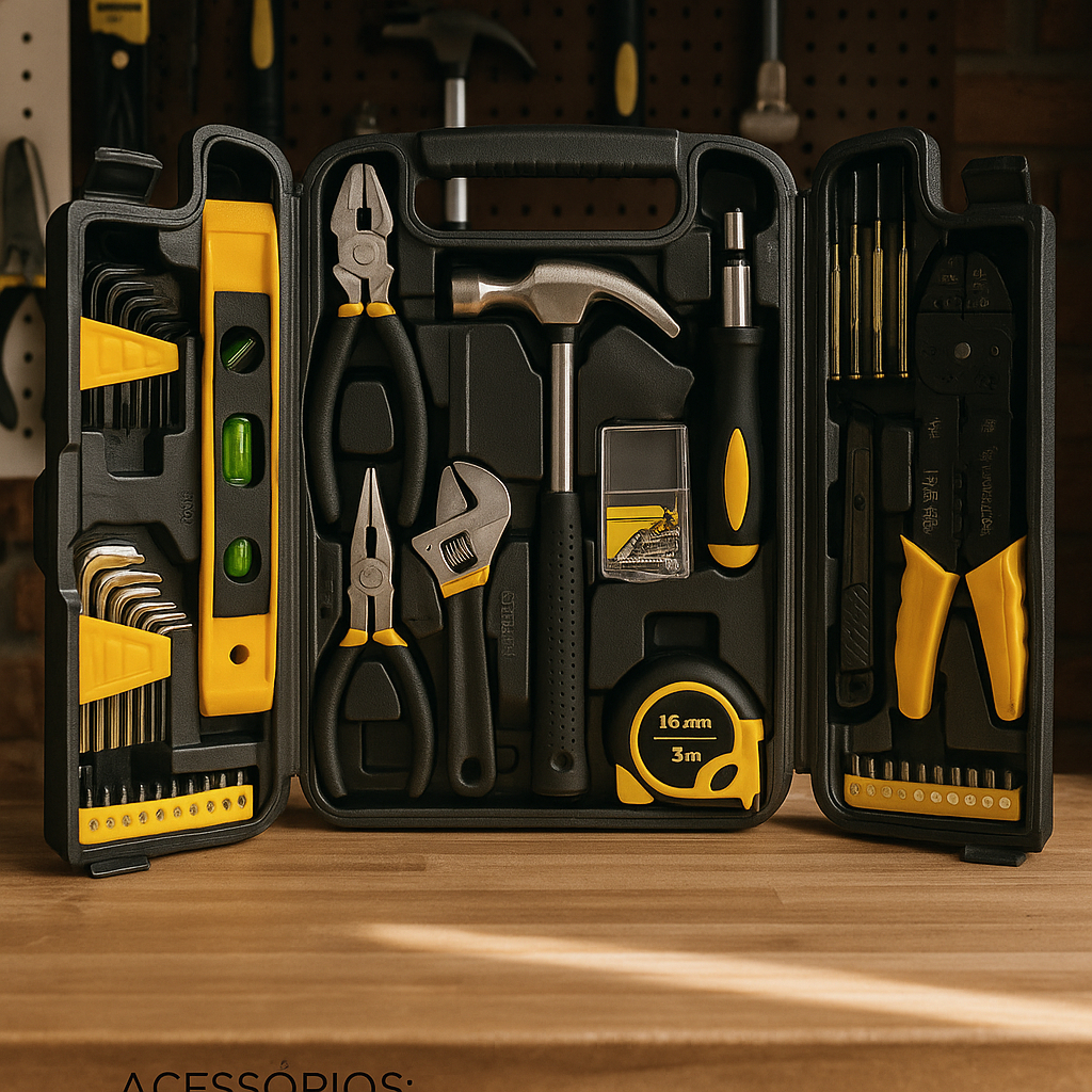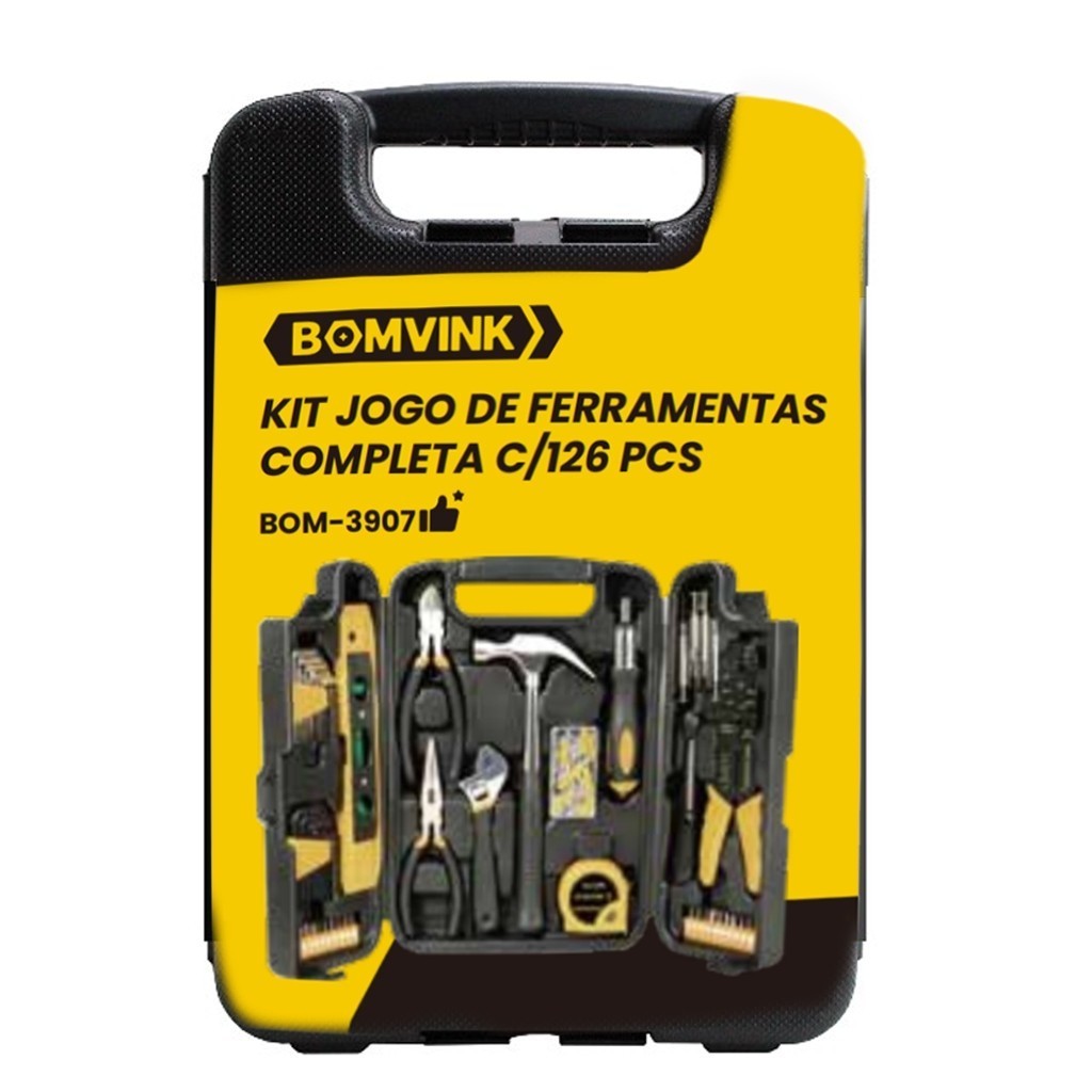Kit Maleta com Ferramentas 126 Peças Bomvink Completa – Alicate, Chave, Martelo, Trena e Mais