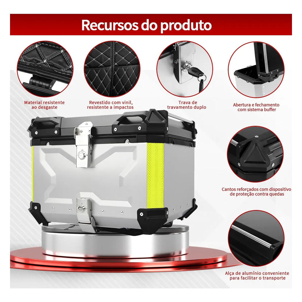 Bauleto Aluminio 45l Reforçado C/base De Fixação Univer Alforje para motocicleta em liga de alumínio