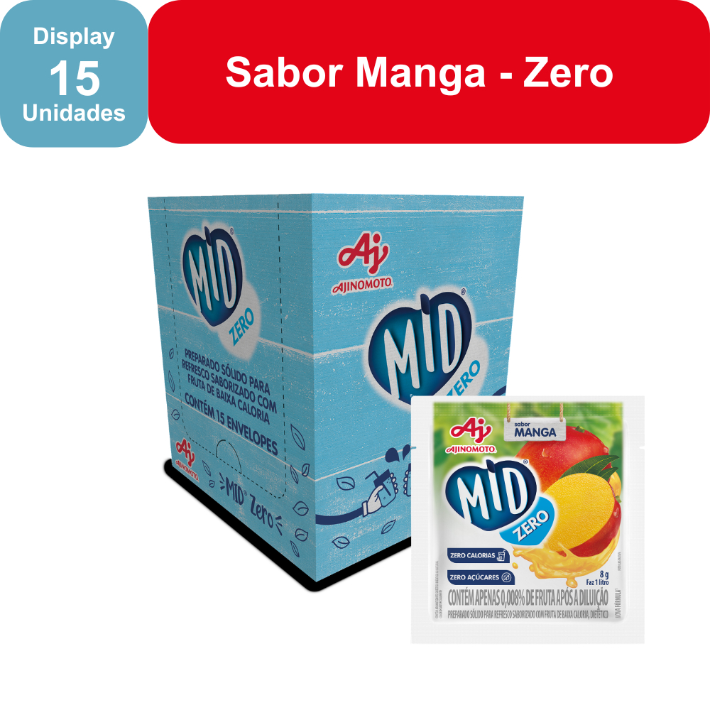 Kit Refresco em Pó MID ZERO® Sabor Manga Com 15 Unidades de 8g