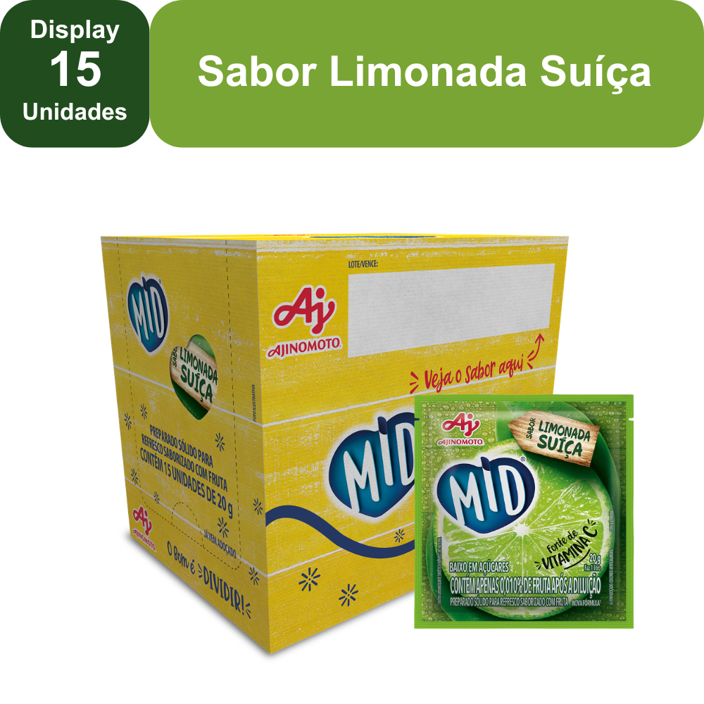 Kit Refresco em Pó MID® Sabor Limonada Suíça Com 15 Unidades de 20g