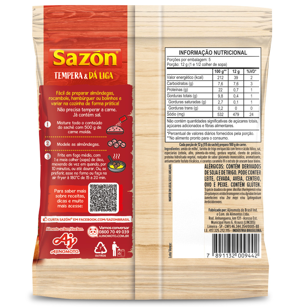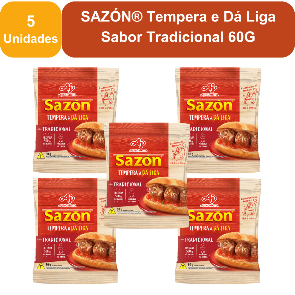 Kit 5 Unidades SAZÓN® Tempera e Dá Liga Sabor Tradicional 60G