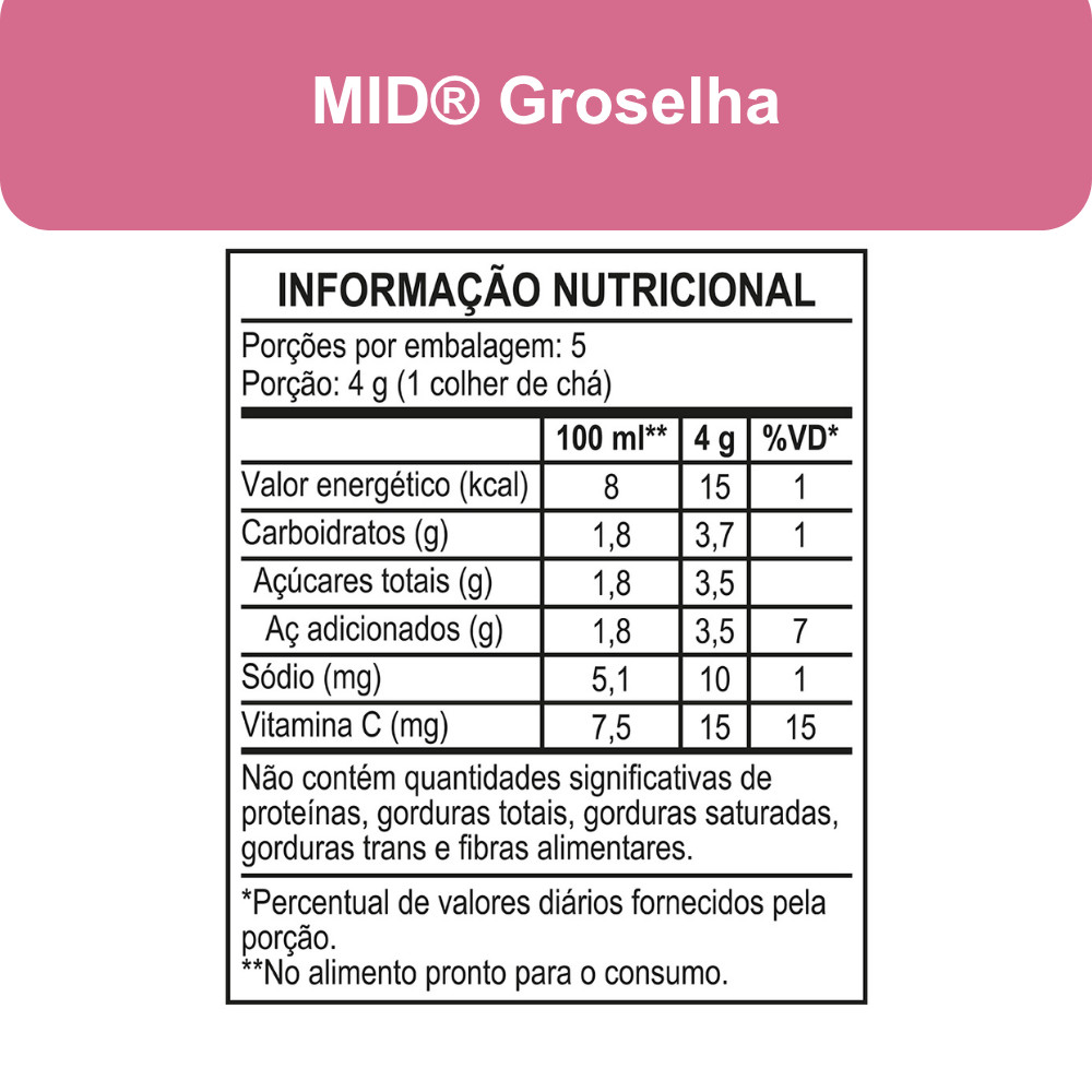 Kit Refresco em Pó MID® Sabor Groselha Com 5 Unidades de 20g
