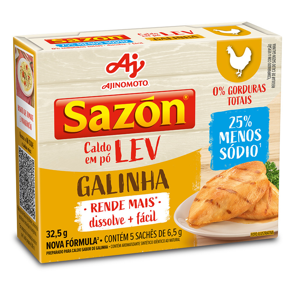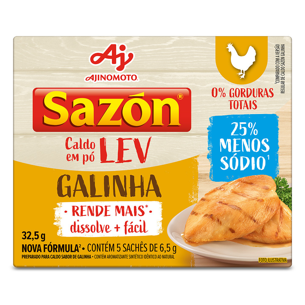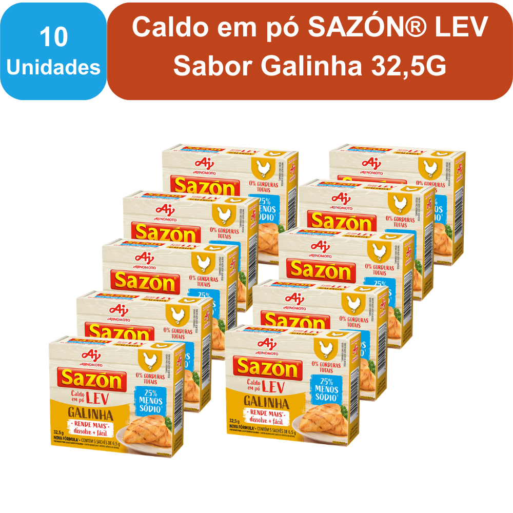 Kit 10 Unidades Caldo em pó SAZÓN® LEV Sabor Galinha 32,5G