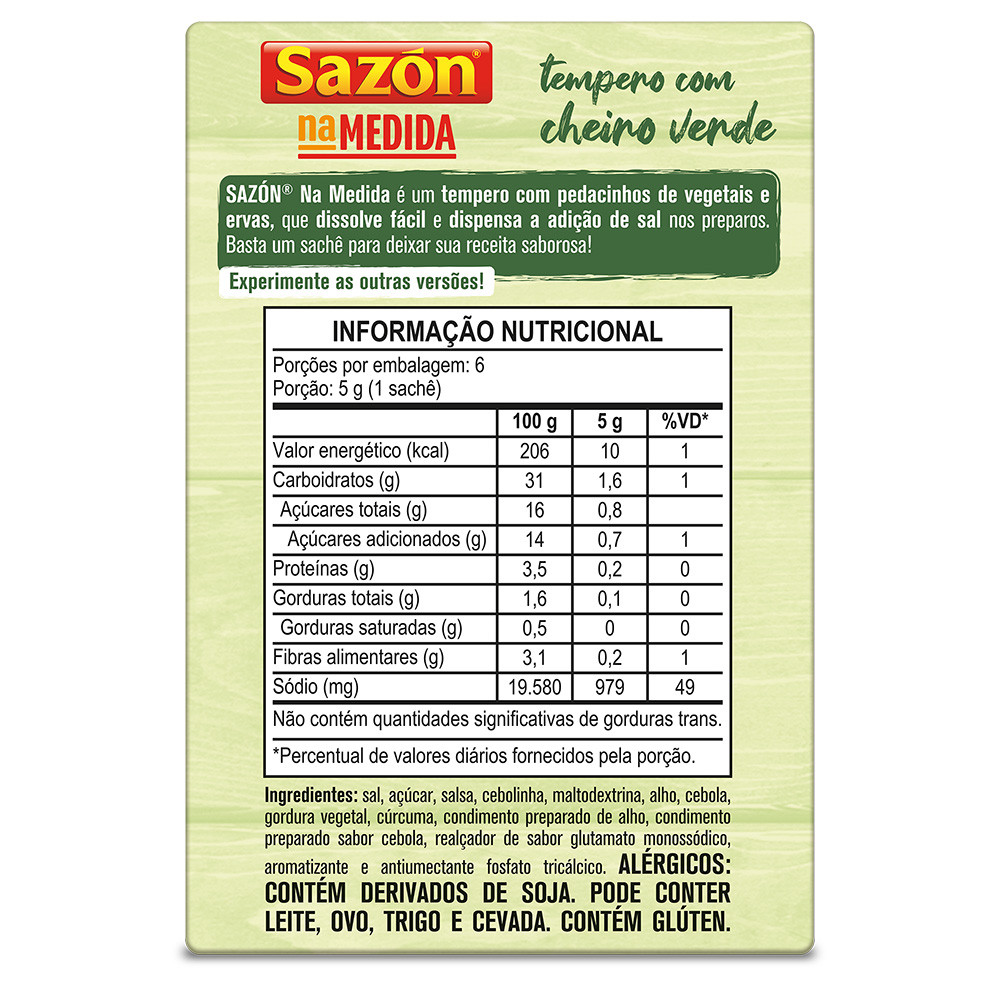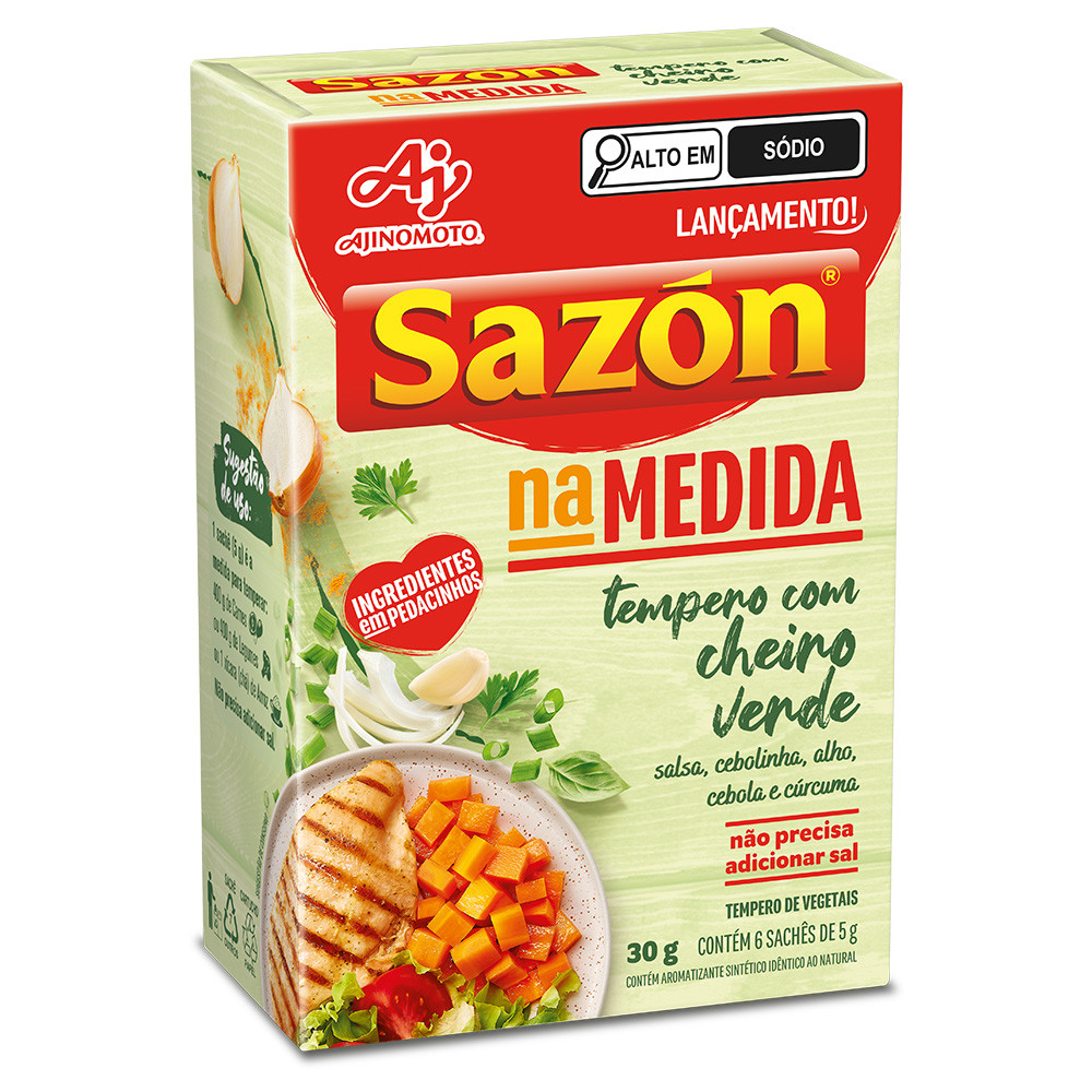 Kit 5 Unidades Tempero Sazón® Na Medida com Cheiro Verde 30G