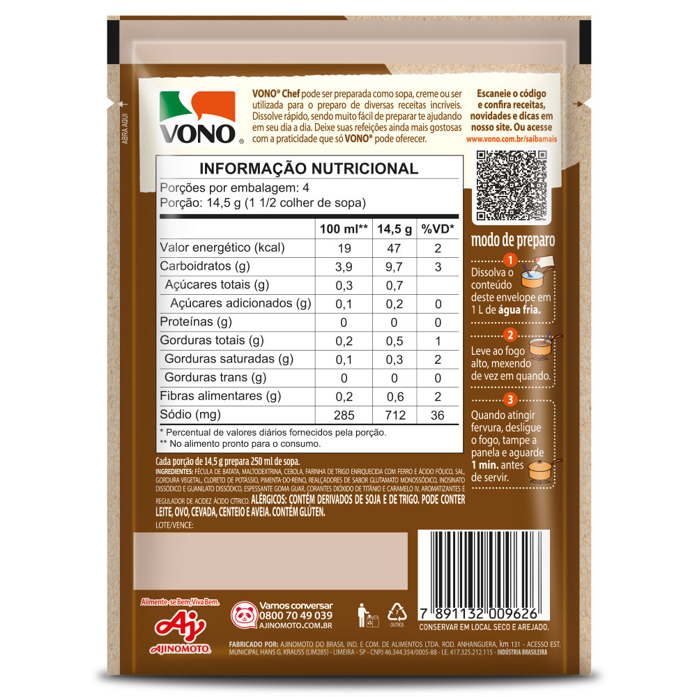 Kit 5 Unidades Sopas Cremosas VONO® CHEF Sabor Creme de Cebola 58g