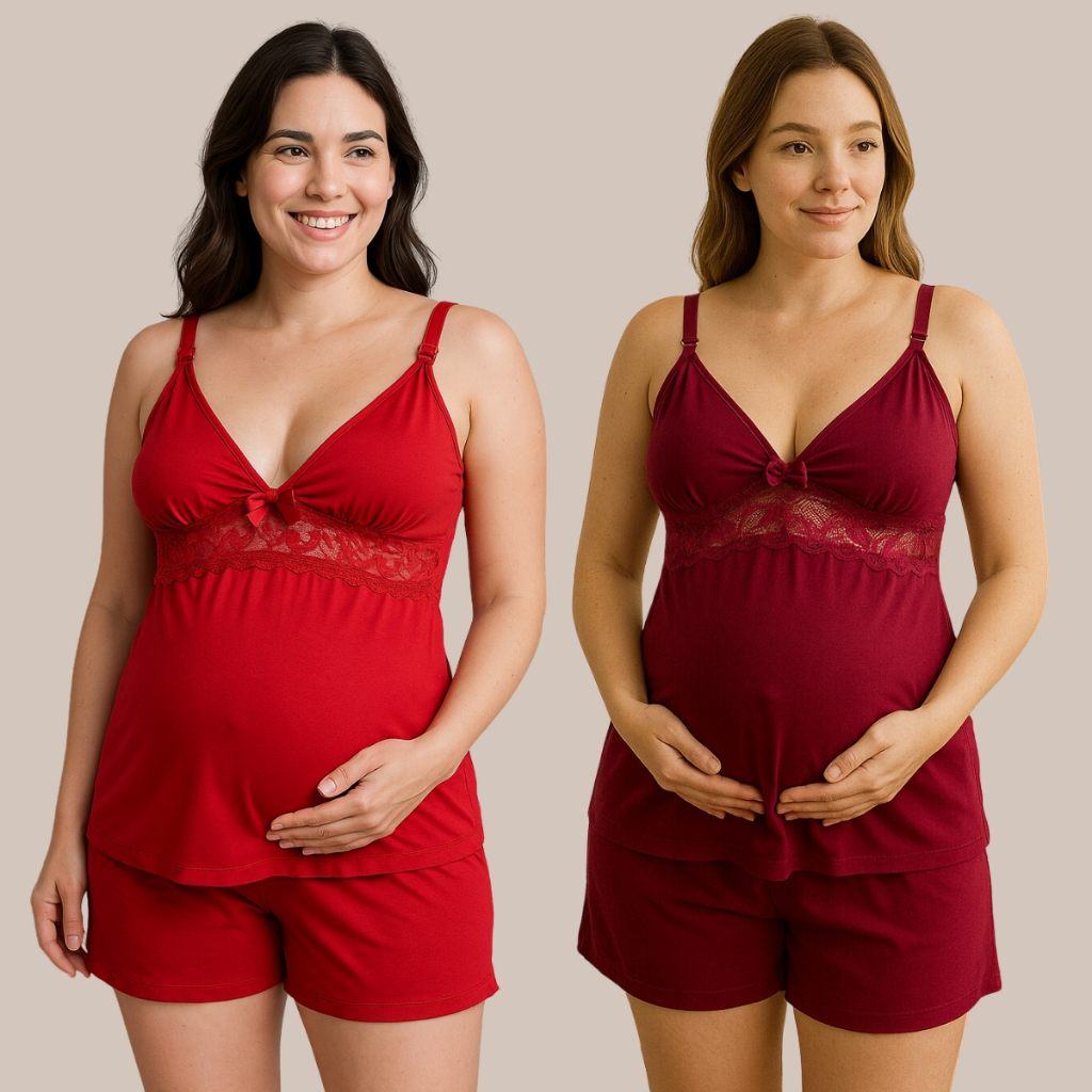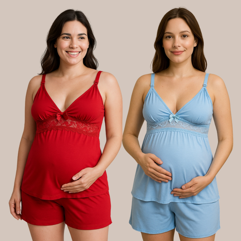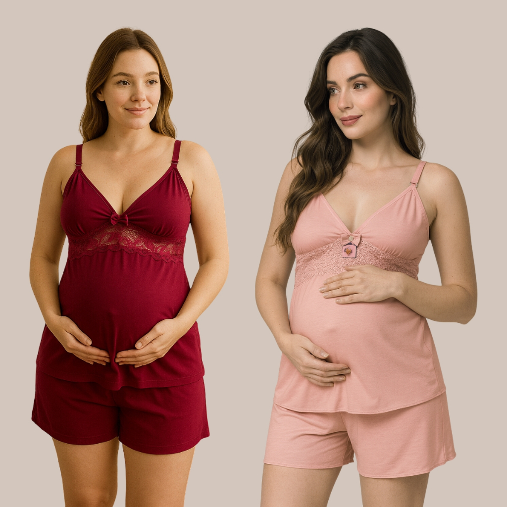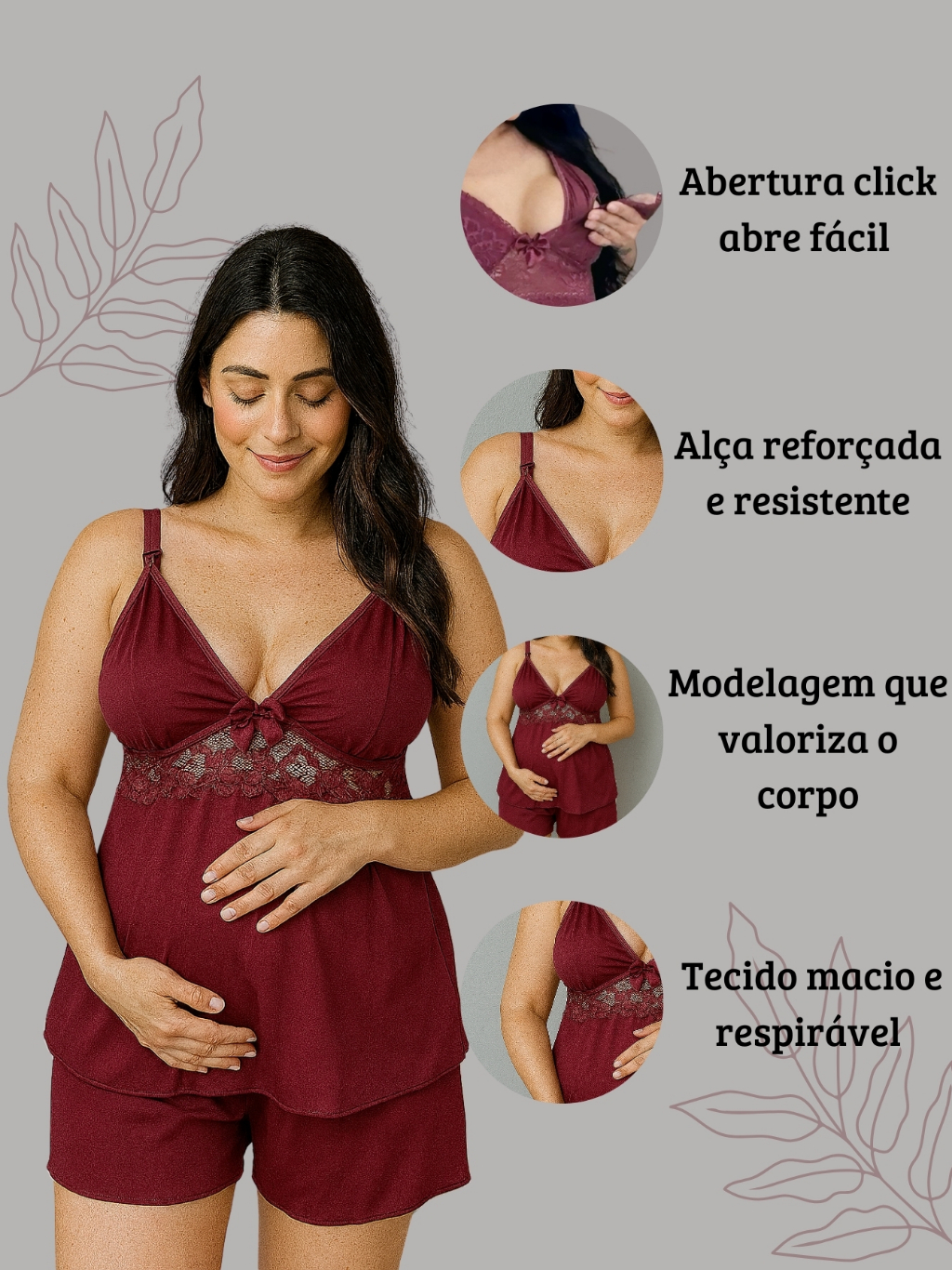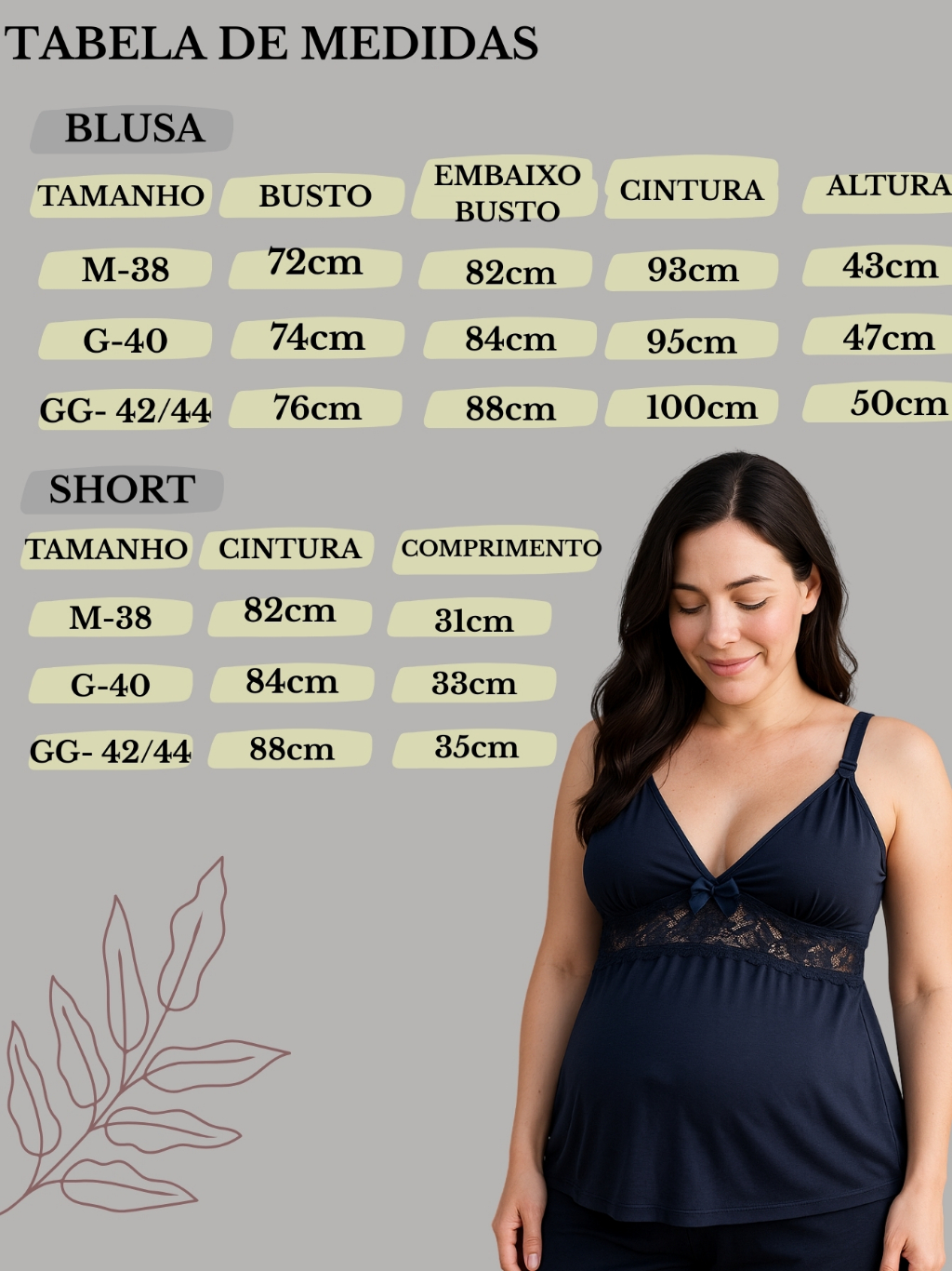 Kit de 02 Short Doll CURTO Amamentação com Abertura em Clique e Detalhes em Renda.